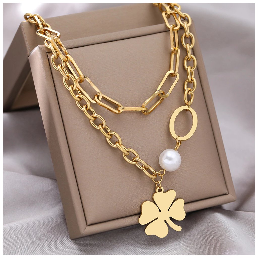 Dvojitý náhrdelník - čtyřlístek - limitovaná edice, zlatá ocel