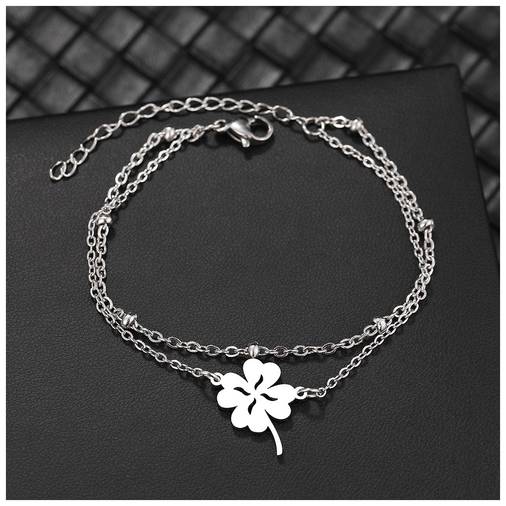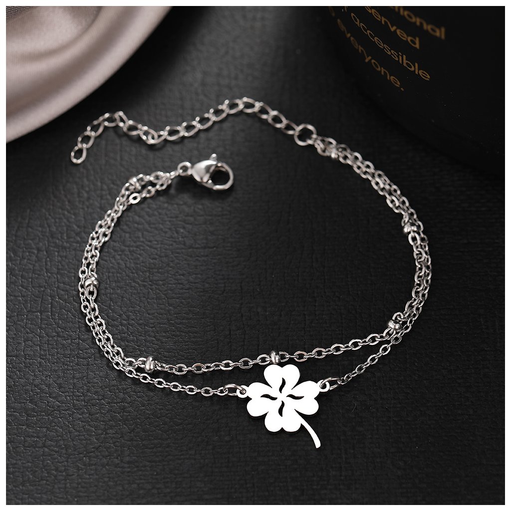 Dvojitý náramek - čtyřlístek Good Luck!, stříbrná ocel