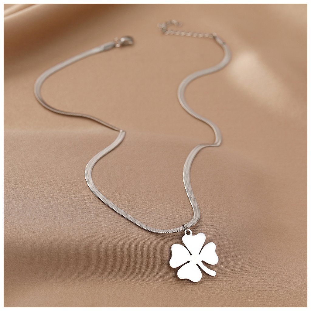 Hadí řetízek s přívěskem - čtyřlístek, stříbrná ocel