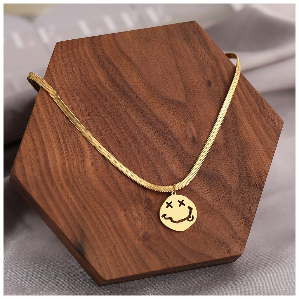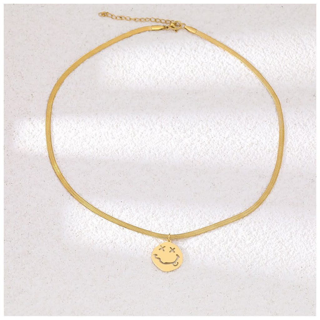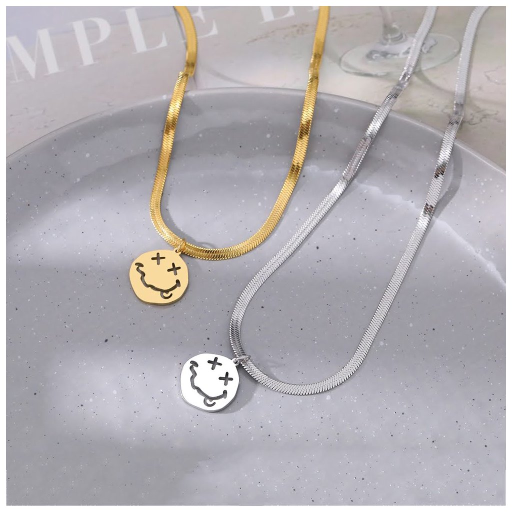 Hadí řetízek s žertovným smajlíkem, zlatá ocel