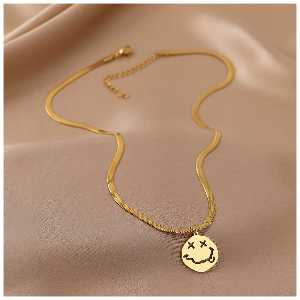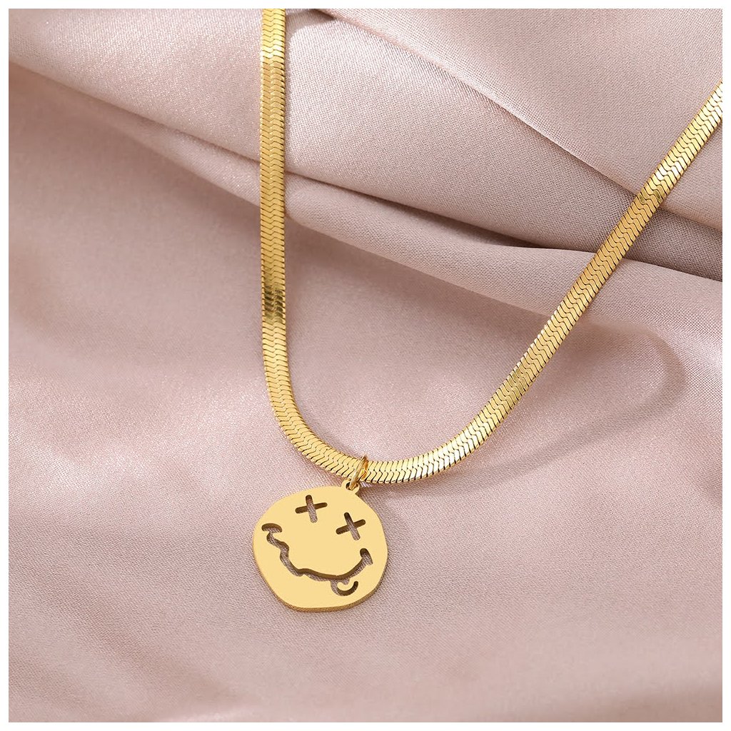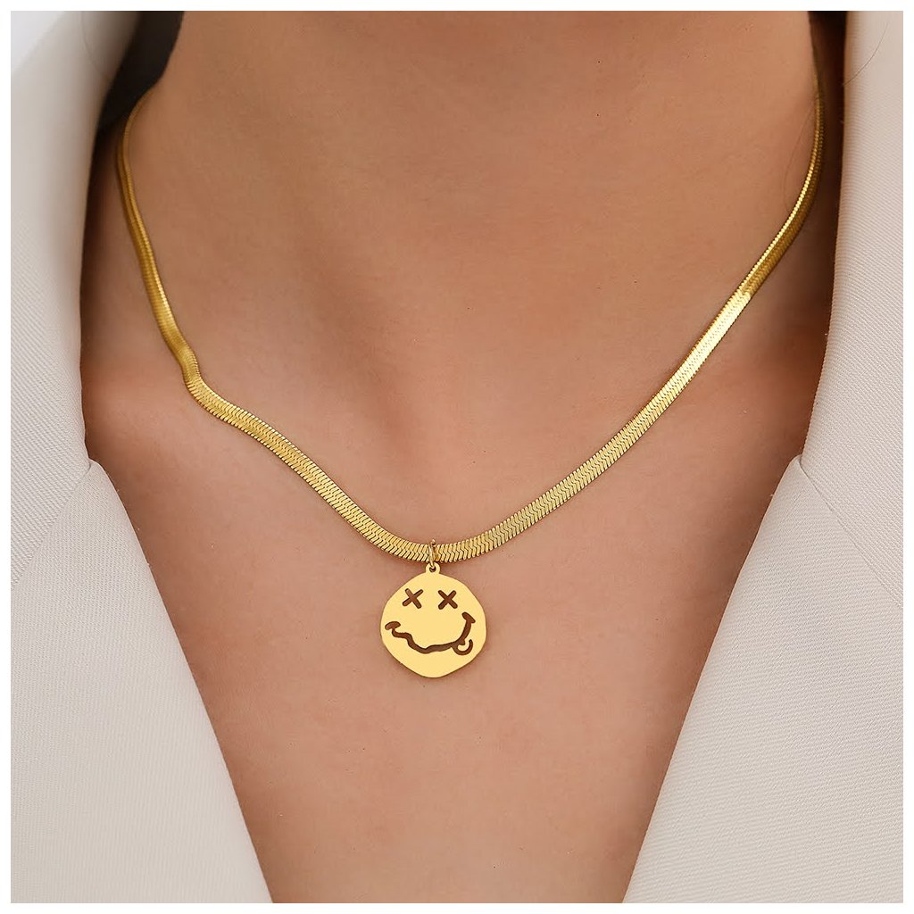 Hadí řetízek s žertovným smajlíkem, zlatá ocel