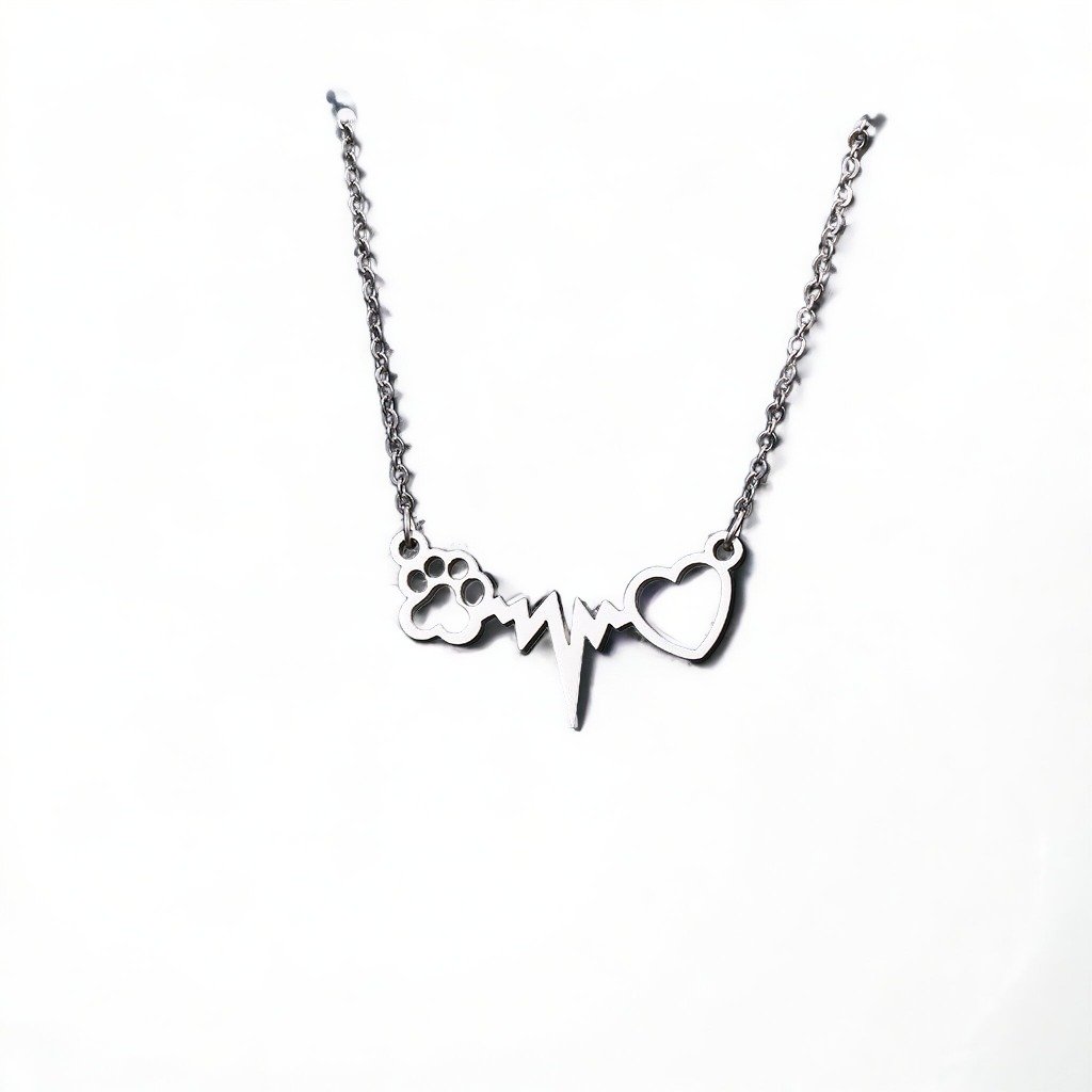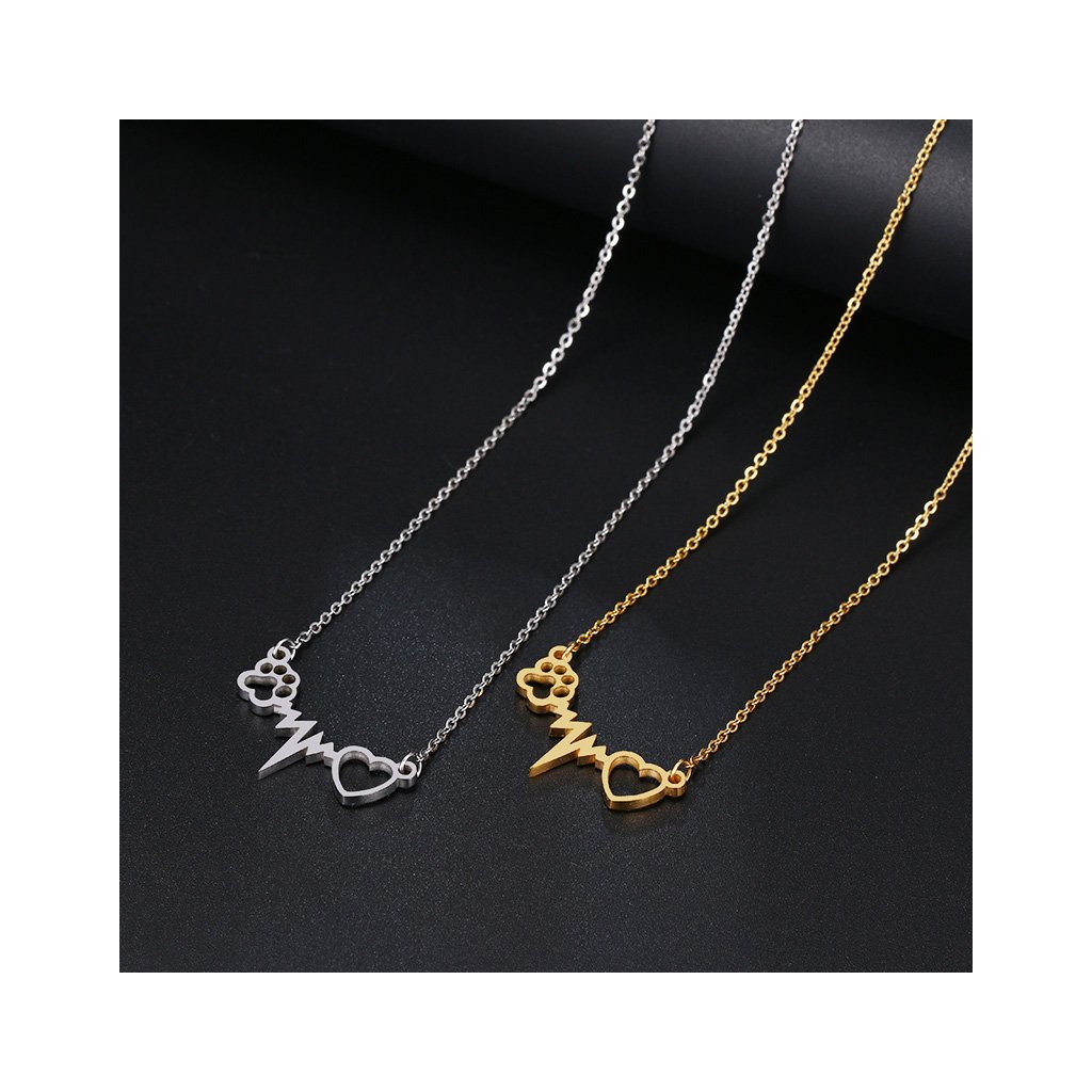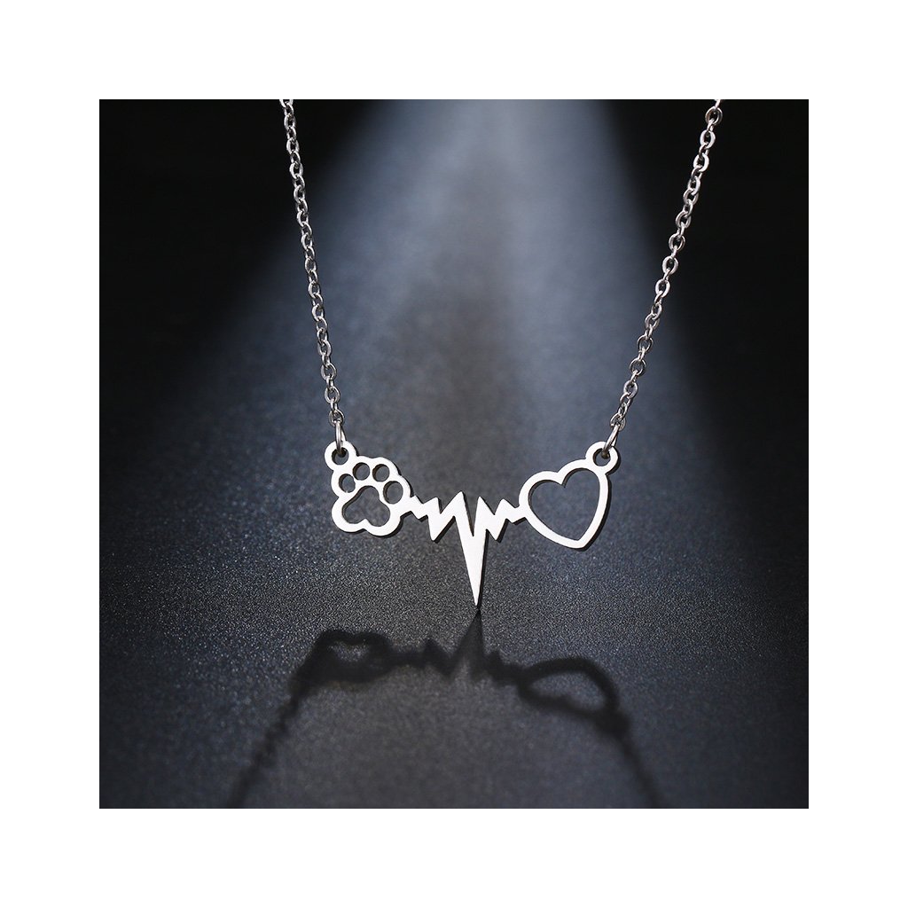 Řetízek s přívěskem - psí tlapka a srdce, stříbrná ocel