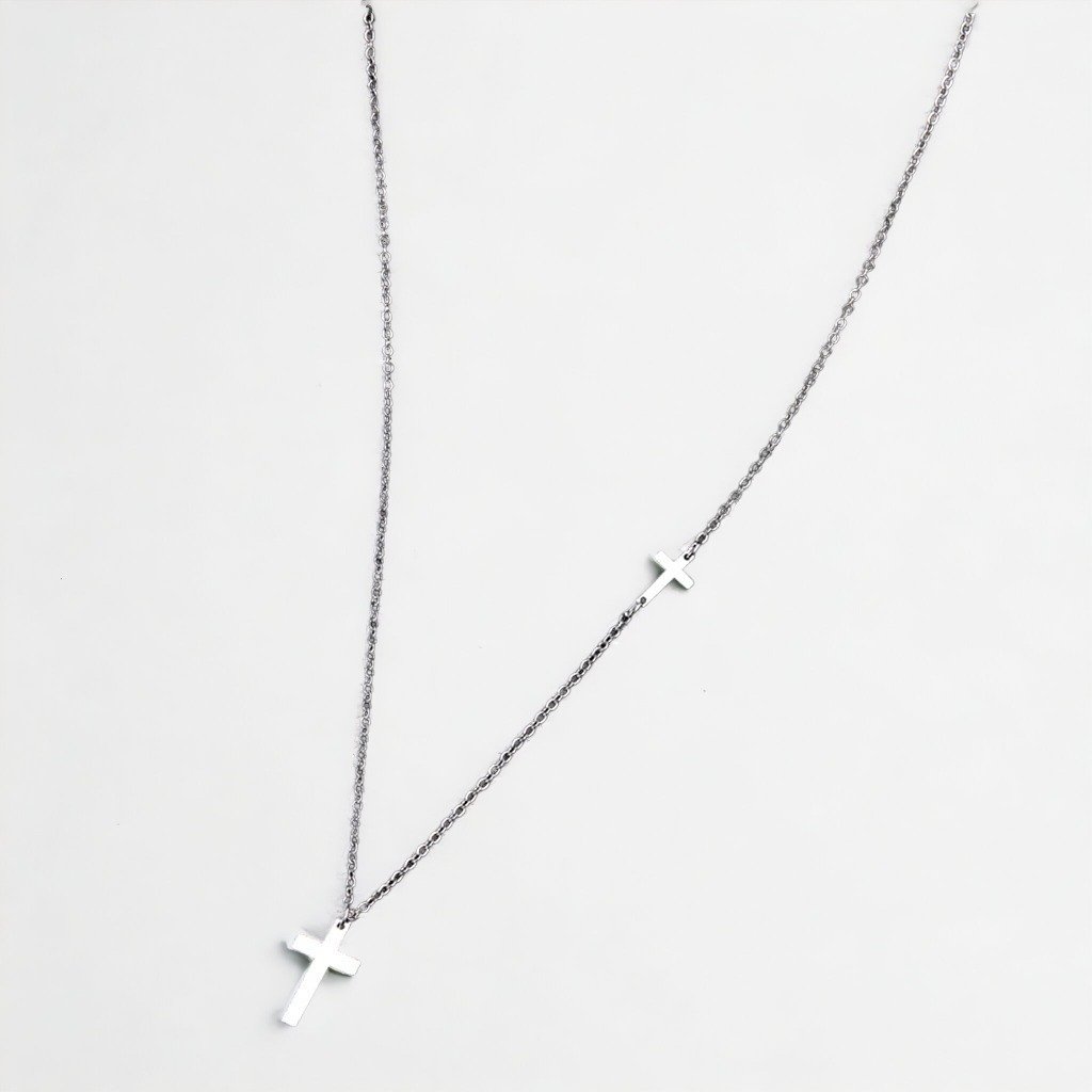 Řetízek se dvěma přívěsky - křížek Double, stříbrná ocel