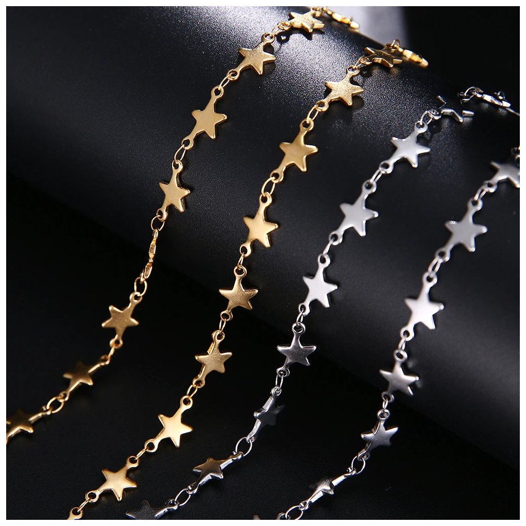 Řetízek s hvězdičkami po celé délce, stříbrná ocel