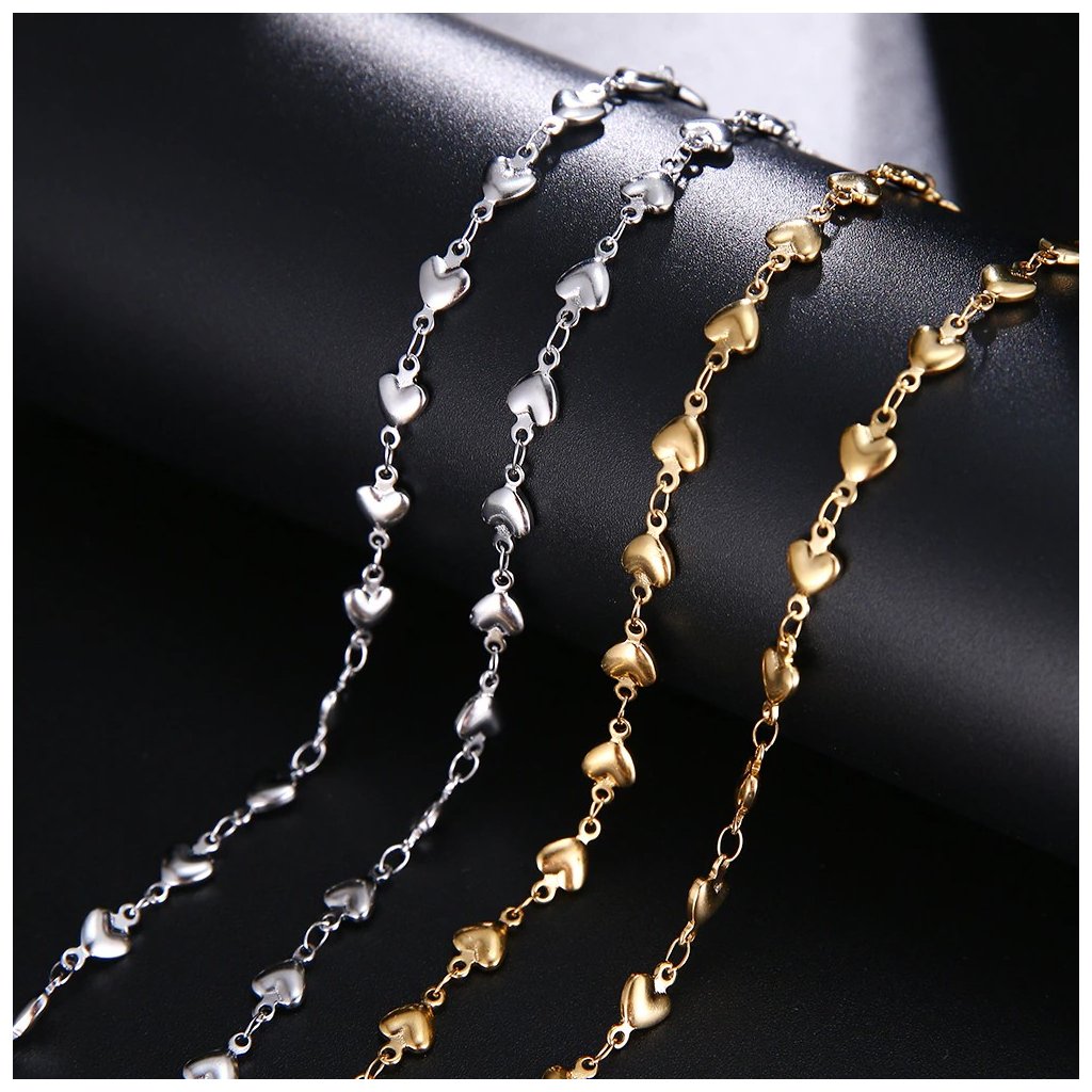 Řetízek se srdíčky po celé délce, zlatá ocel