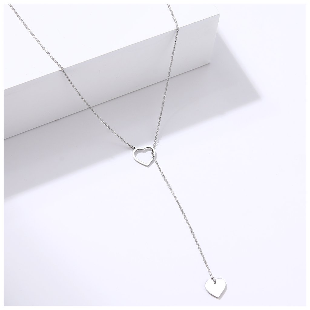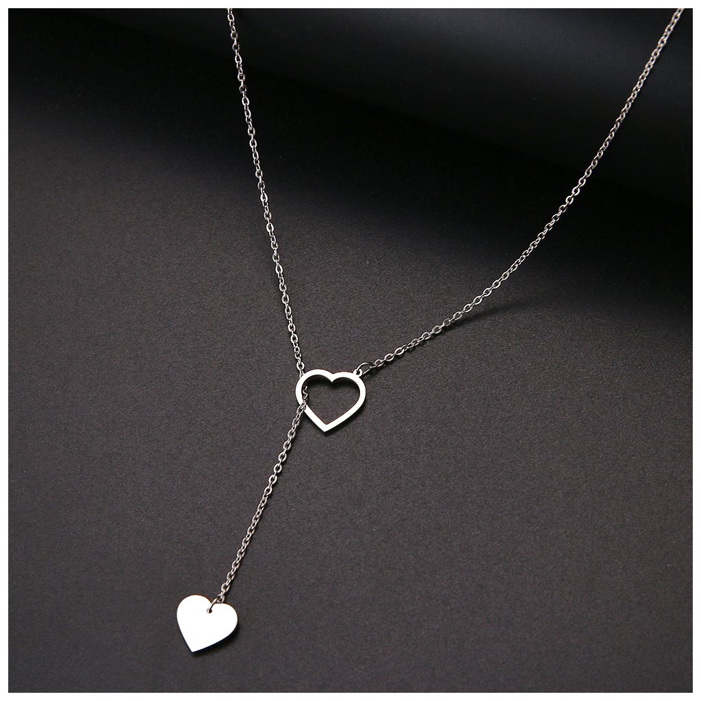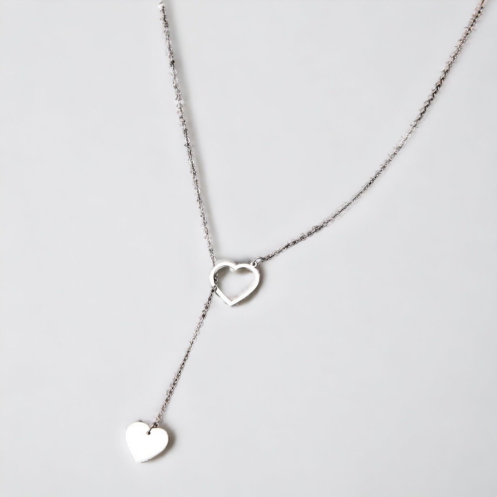 Řetízek se dvěma přívěsky - plné a prázdné srdce, stříbrná ocel