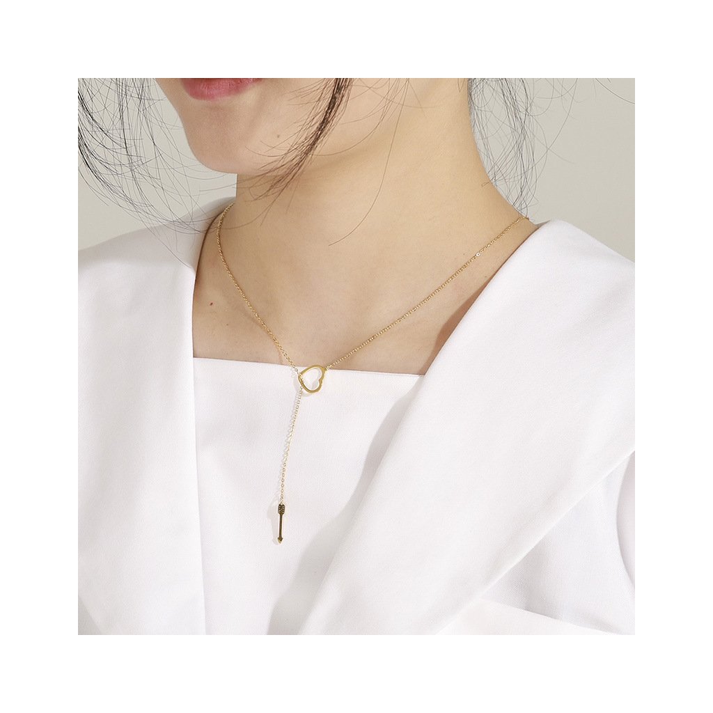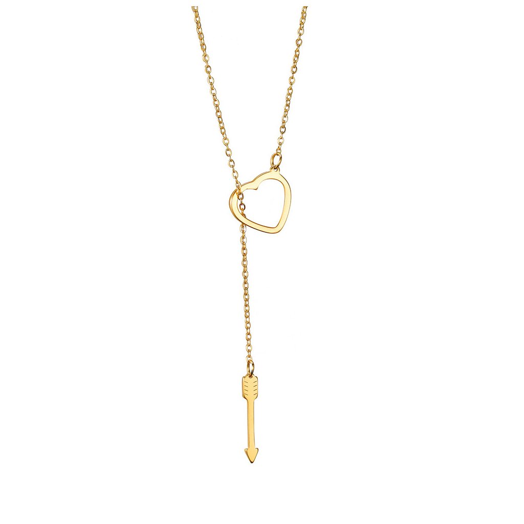Řetízek se dvěma přívěsky - srdce a šíp, zlatá ocel