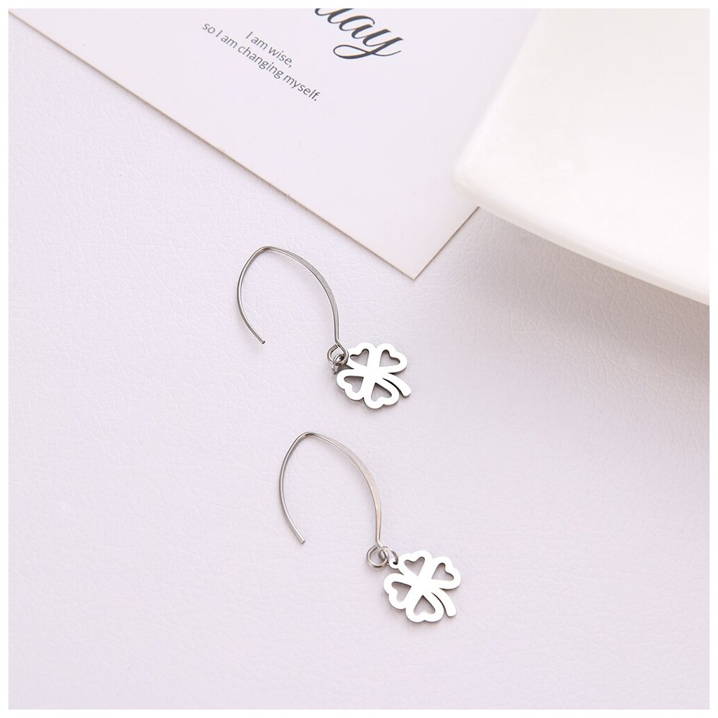 Náušnice na háček - čtyřlístek Uma, stříbrná ocel