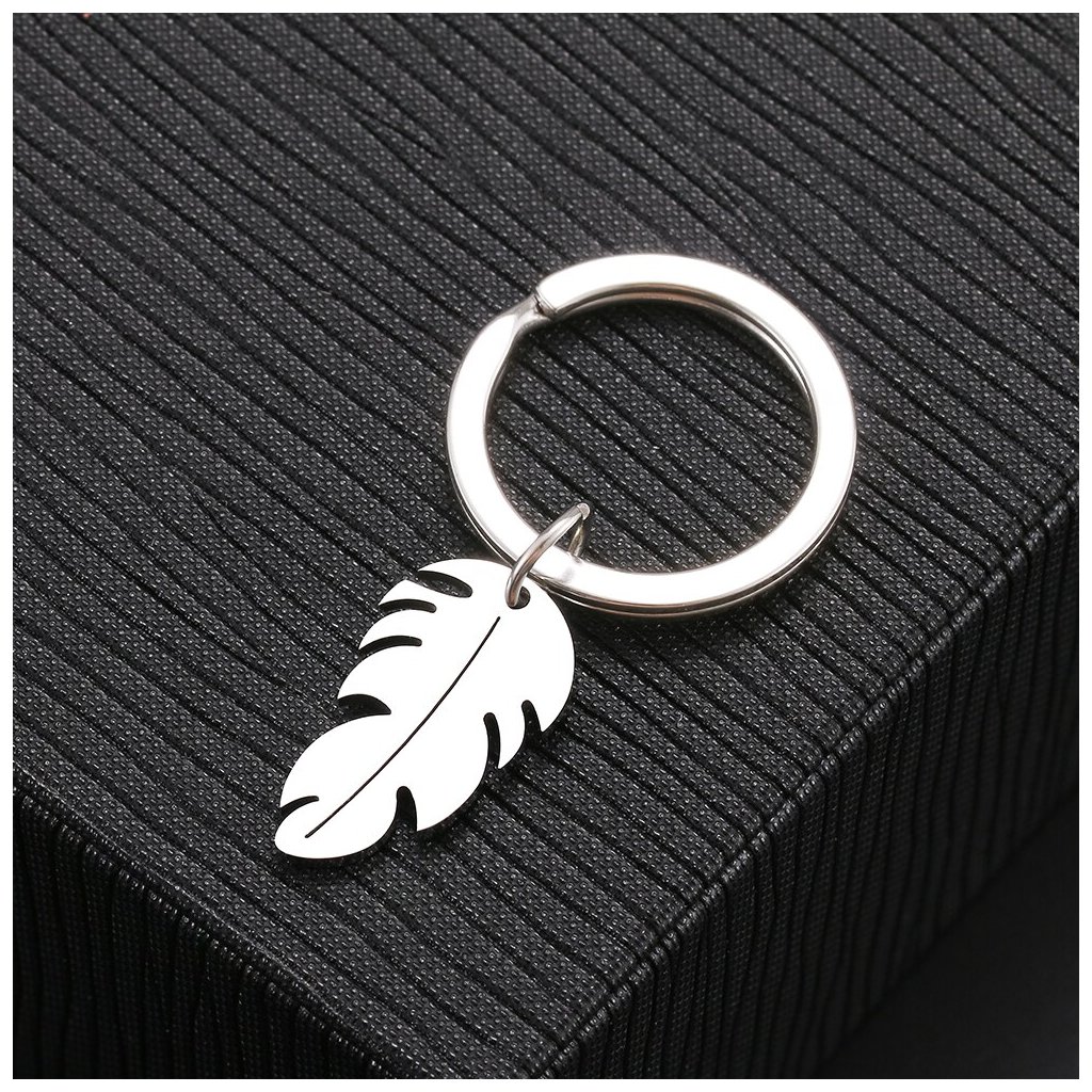 Ocelová klíčenka s přívěskem - peříčko