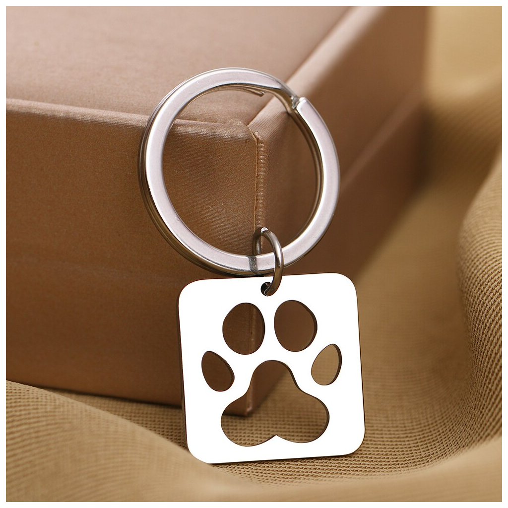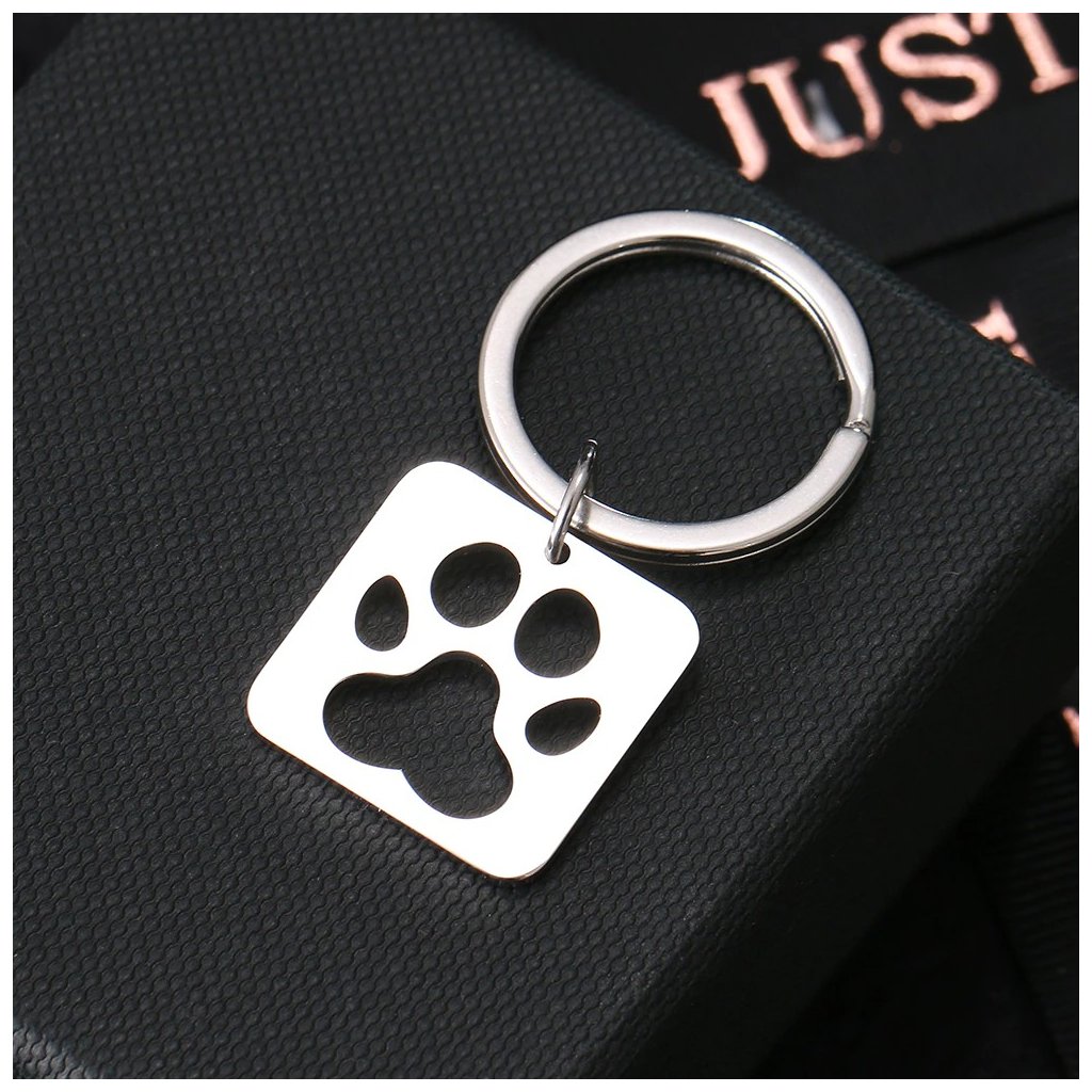 Ocelová klíčenka s přívěskem - psí tlapka - čtvereček