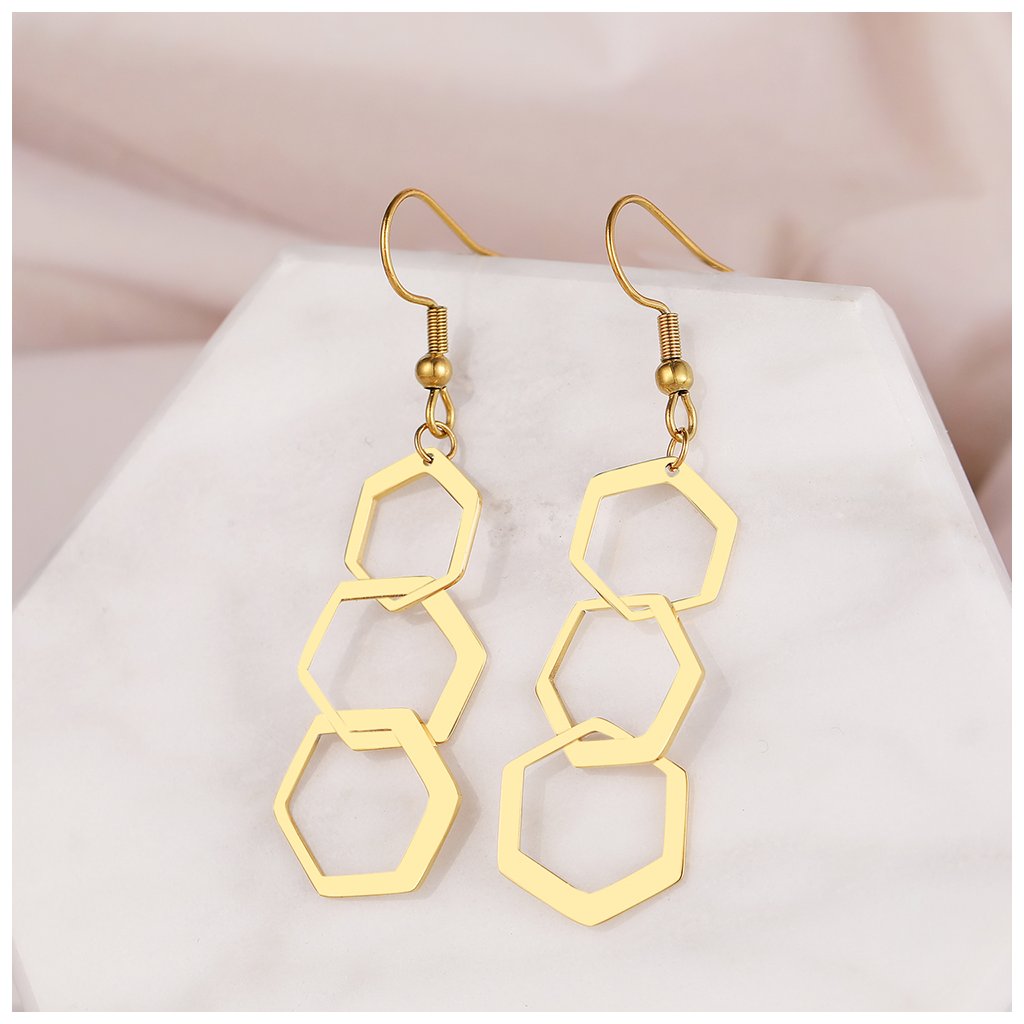 Ocelové háčkové náušnice - geometrické trio