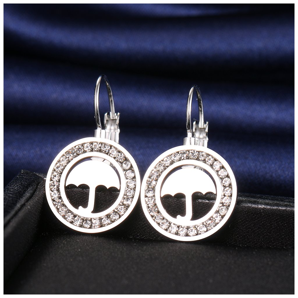 Ocelové náušnice s kamínky - deštník