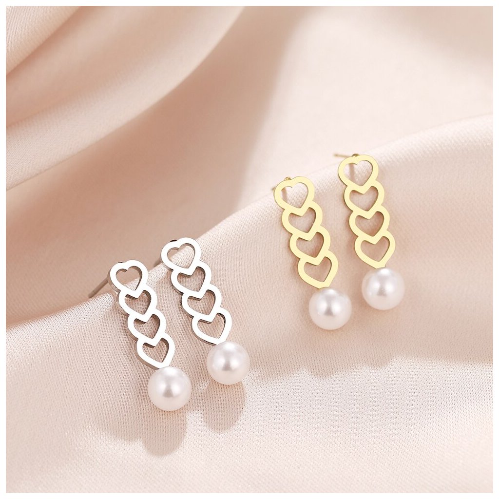 Náušnice s čtyřmi srdci a perlou mohou vyjadřovat lásku, přátelství a krásu. Tento design je vhodný pro různé příležitosti, včetně romantických večerů, oslav a každodenního nošení. Kombinace srdcí a perly dodává šperku eleganci a sofistikovanost.