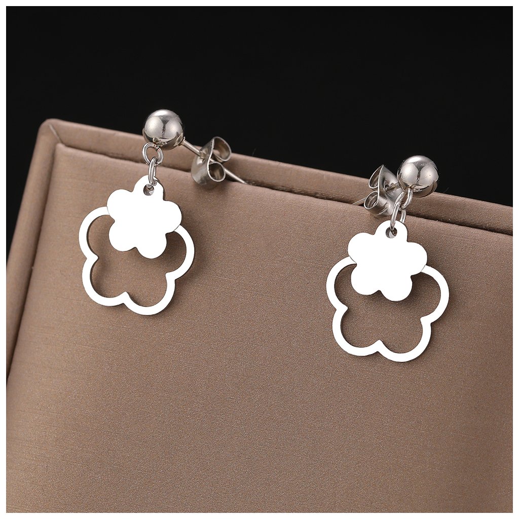 Ocelové puzetové náušnice s peckou - květinový sen