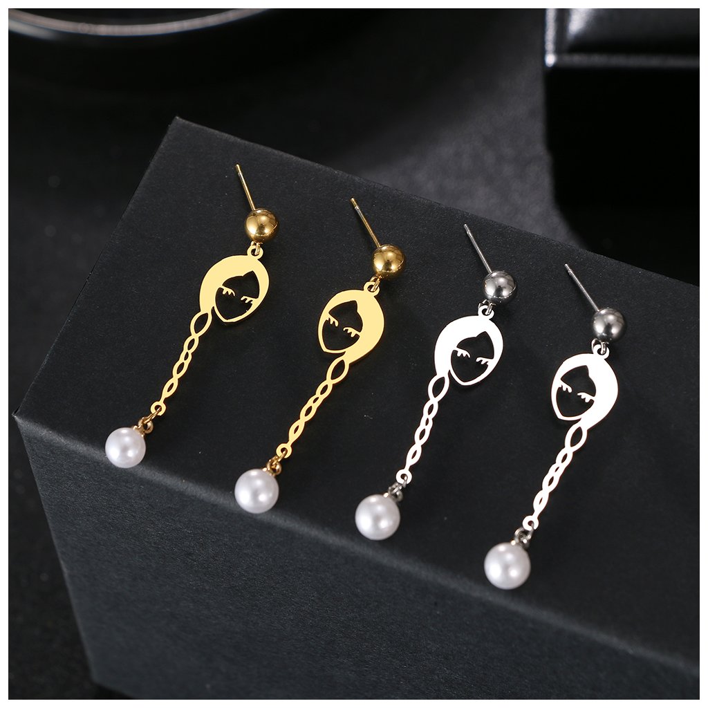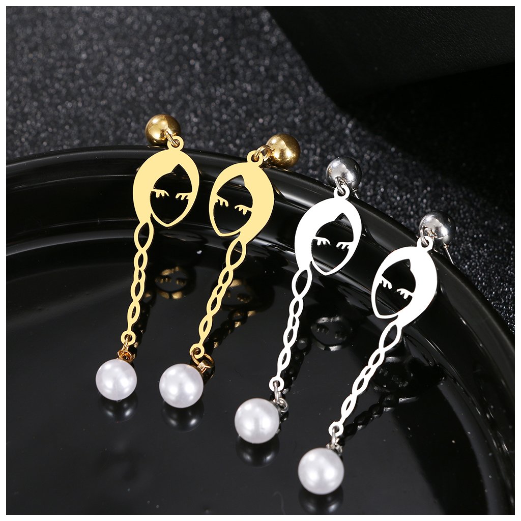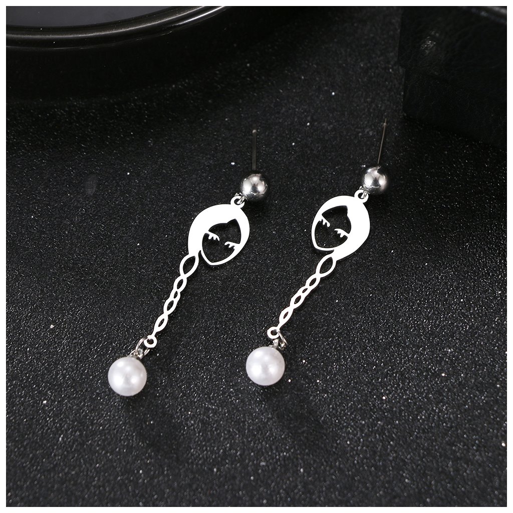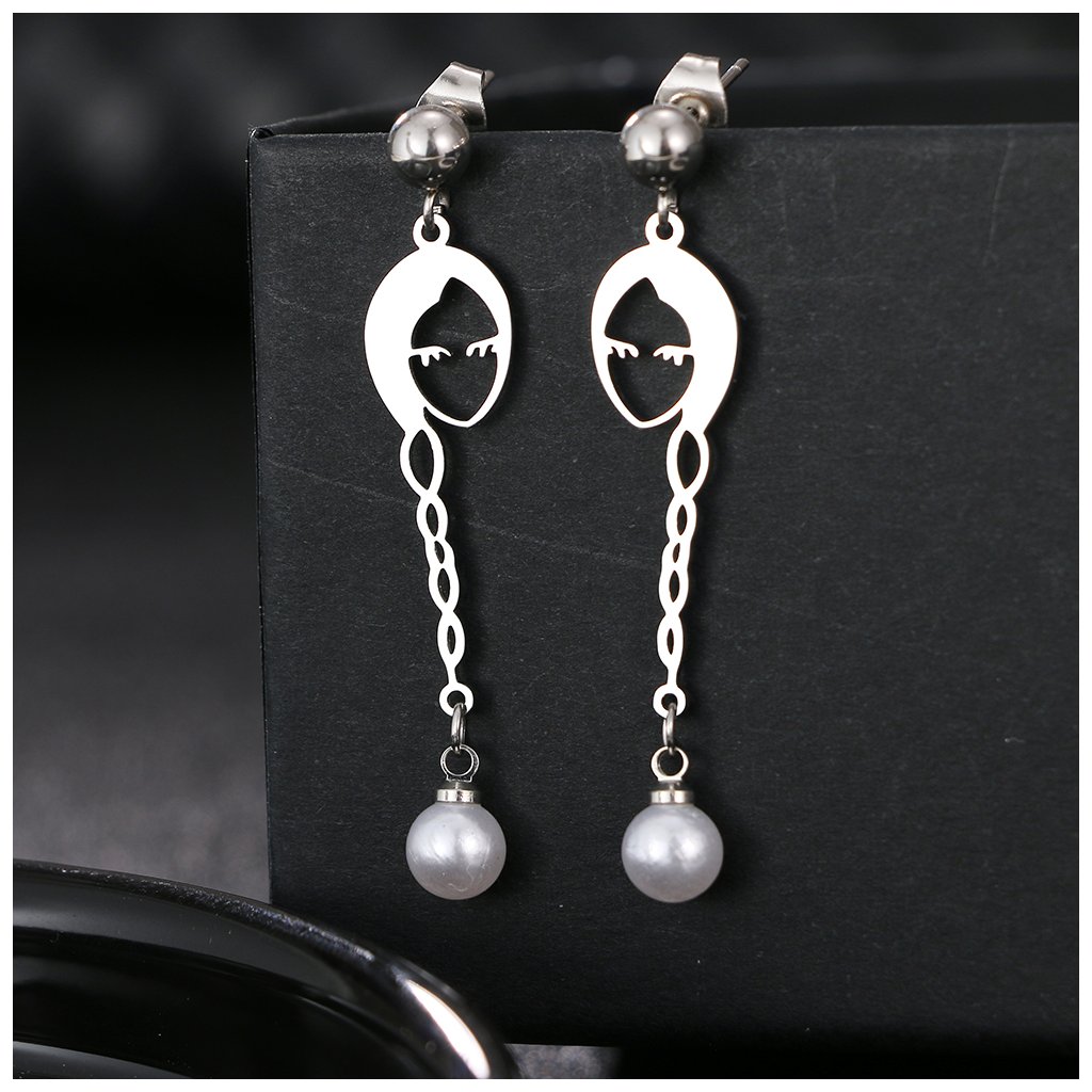 Ocelové puzetové náušnice s peckou - žena s perlou
