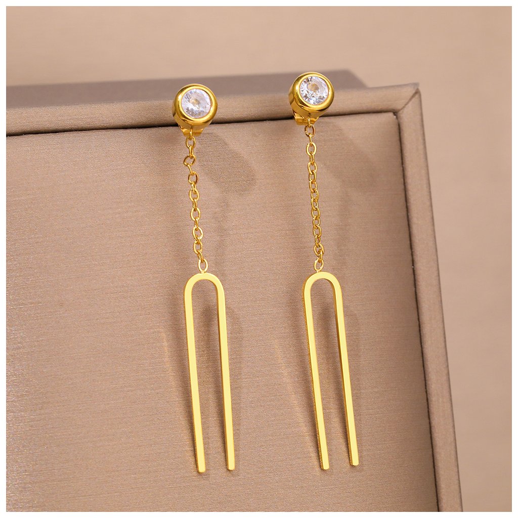 Ocelové puzetové náušnice s řetízkem - Elegance Paris