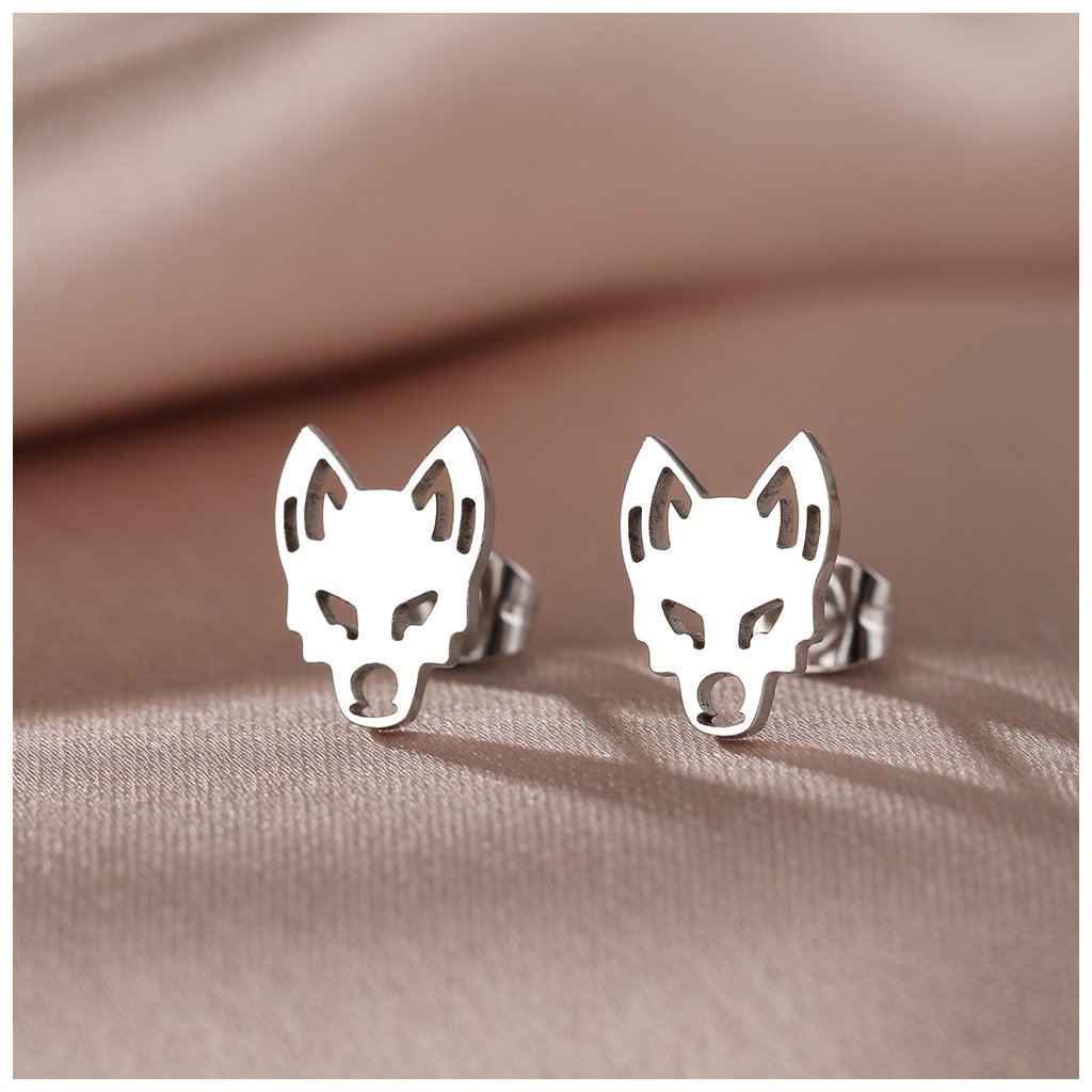 Ocelové puzetové náušnice - vlk