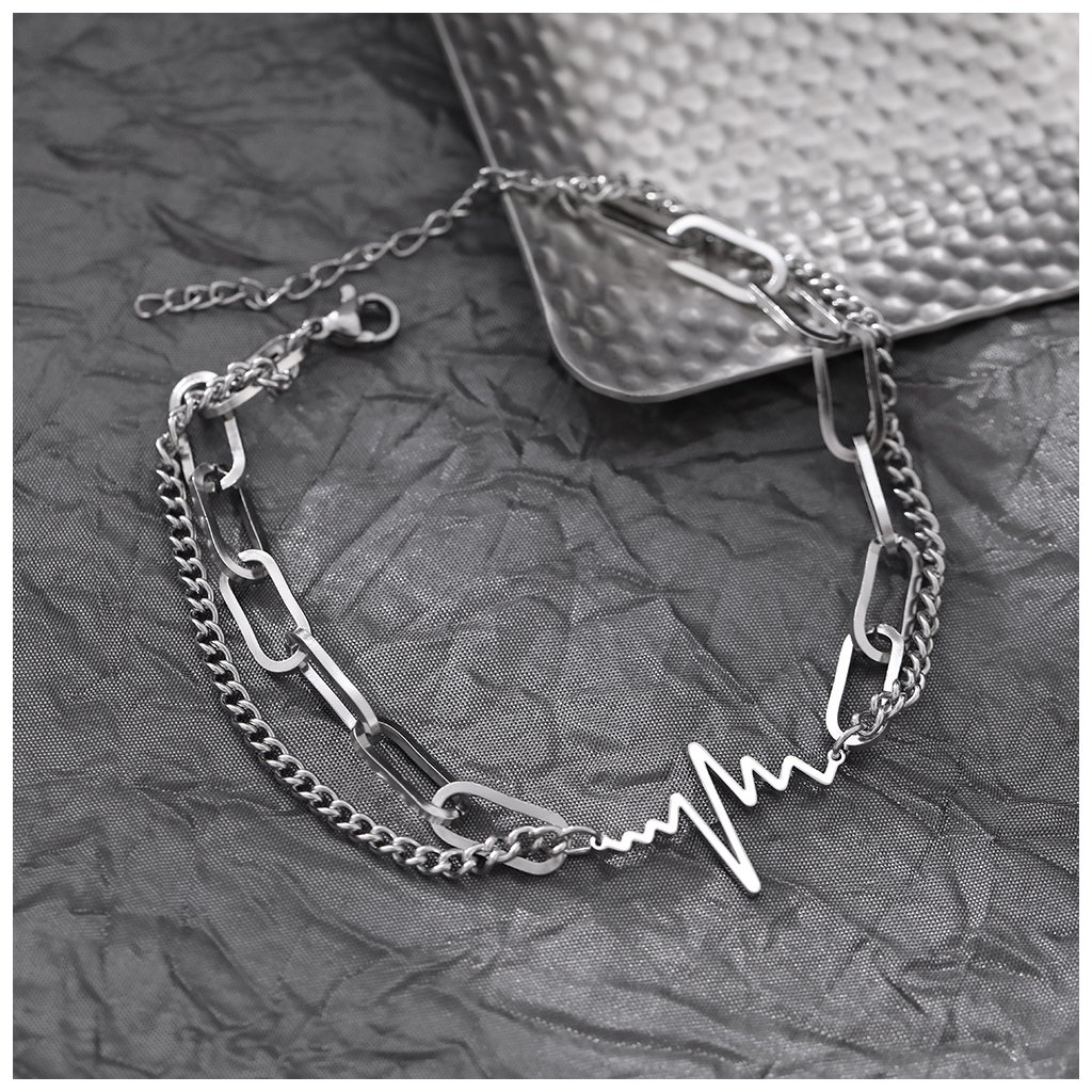 Ocelový dvojitý náramek se symbolem kardiogramu je šperk, který představuje vizuální zobrazení srdečního rytmu.