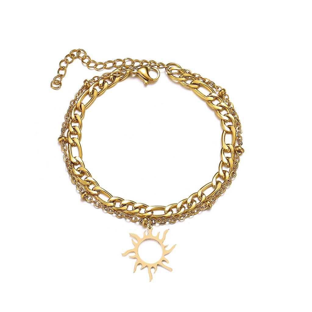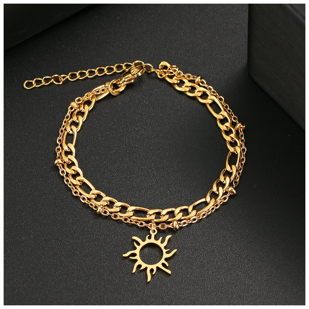 Ocelový dvojitý náramek se symbolem slunce je šperk, který kombinuje ocelové prvky a motiv slunce.