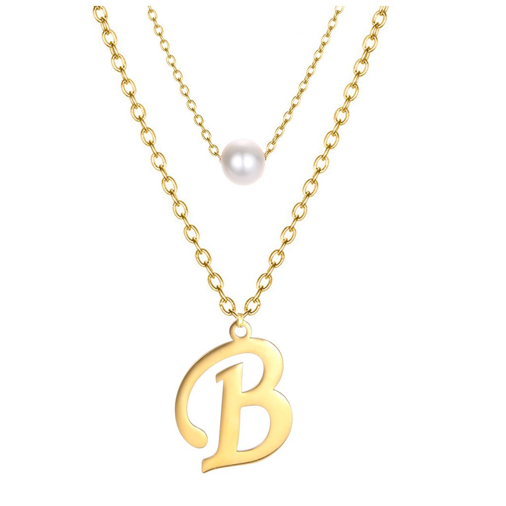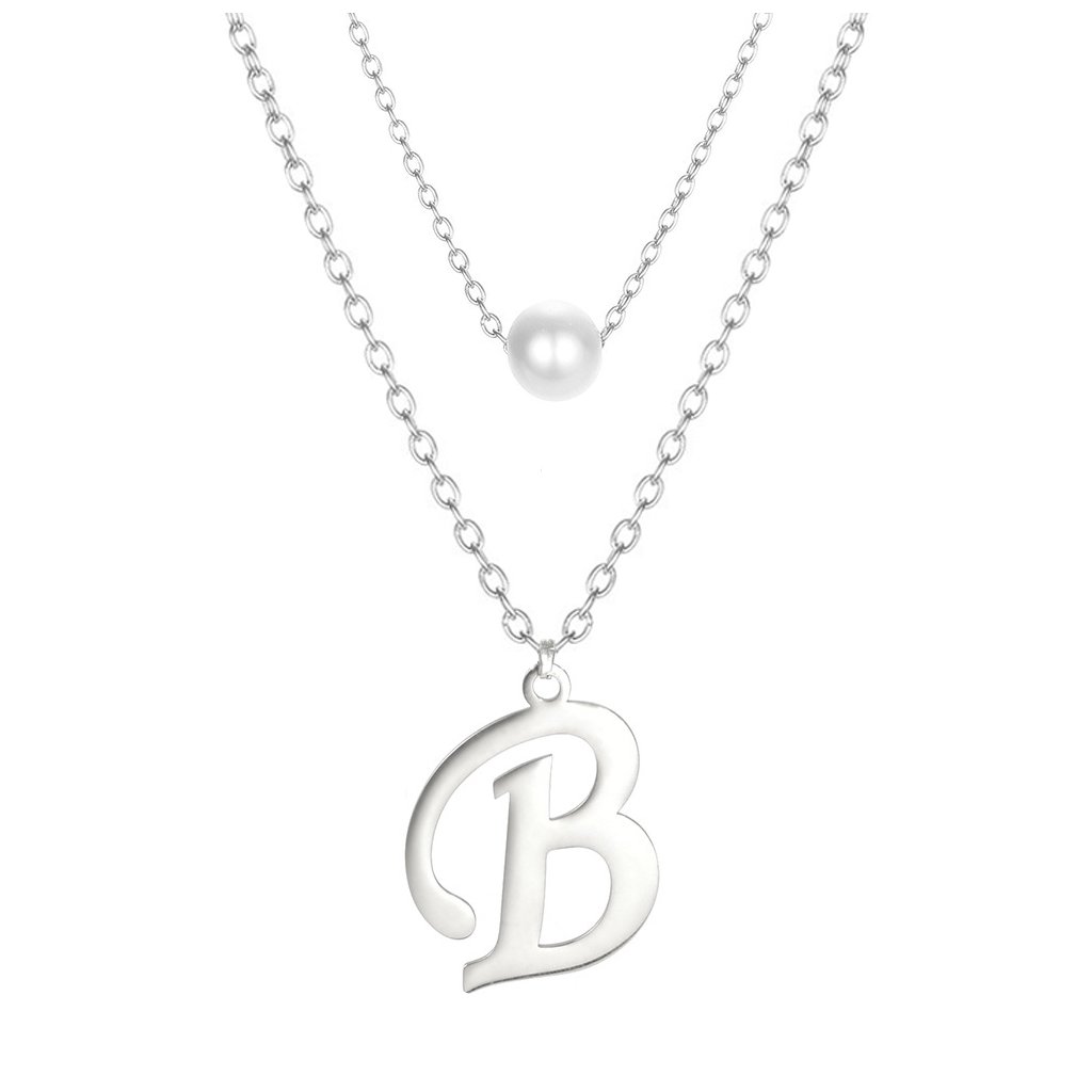 Ocelový dvojitý řetízek s přívěskem - perla a písmeno B