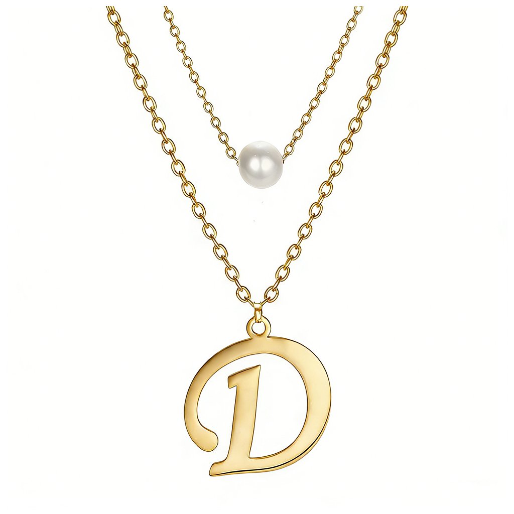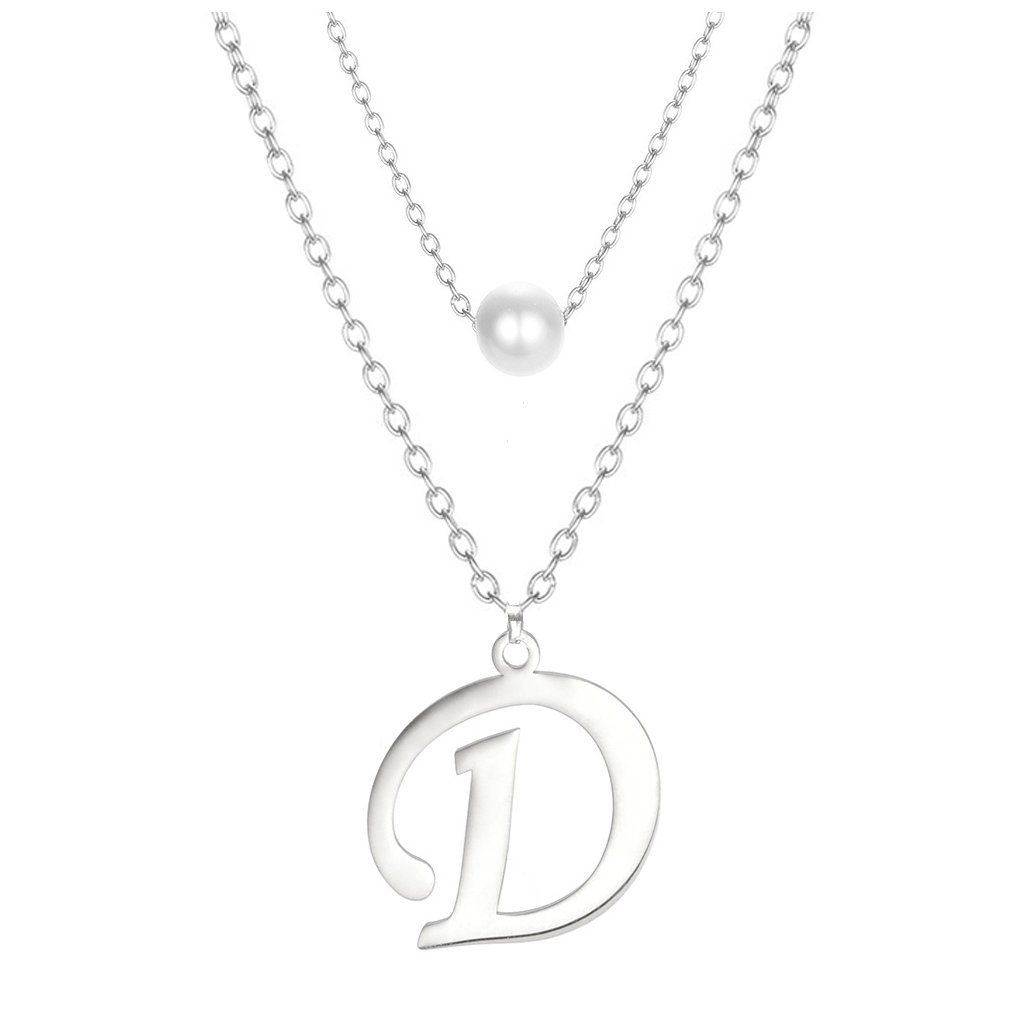 Ocelový dvojitý řetízek s přívěskem - perla a písmeno D