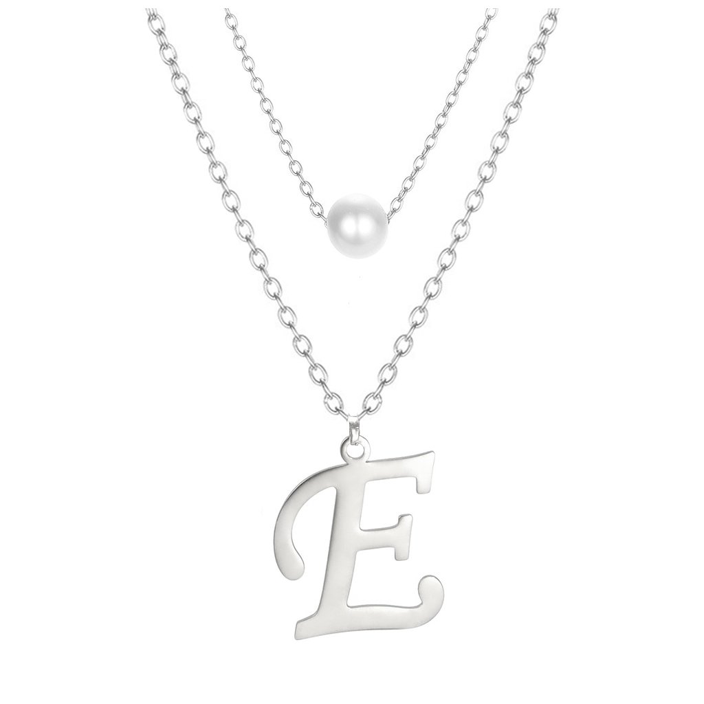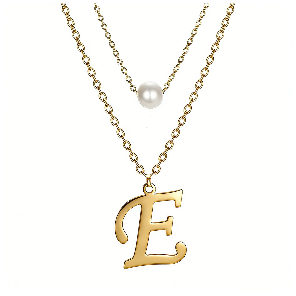 Ocelový dvojitý řetízek s přívěskem - perla a písmeno E