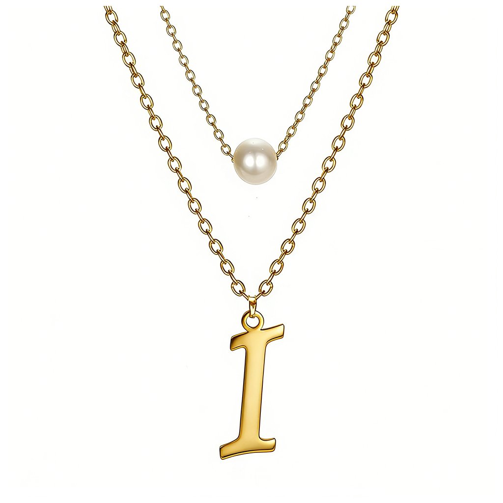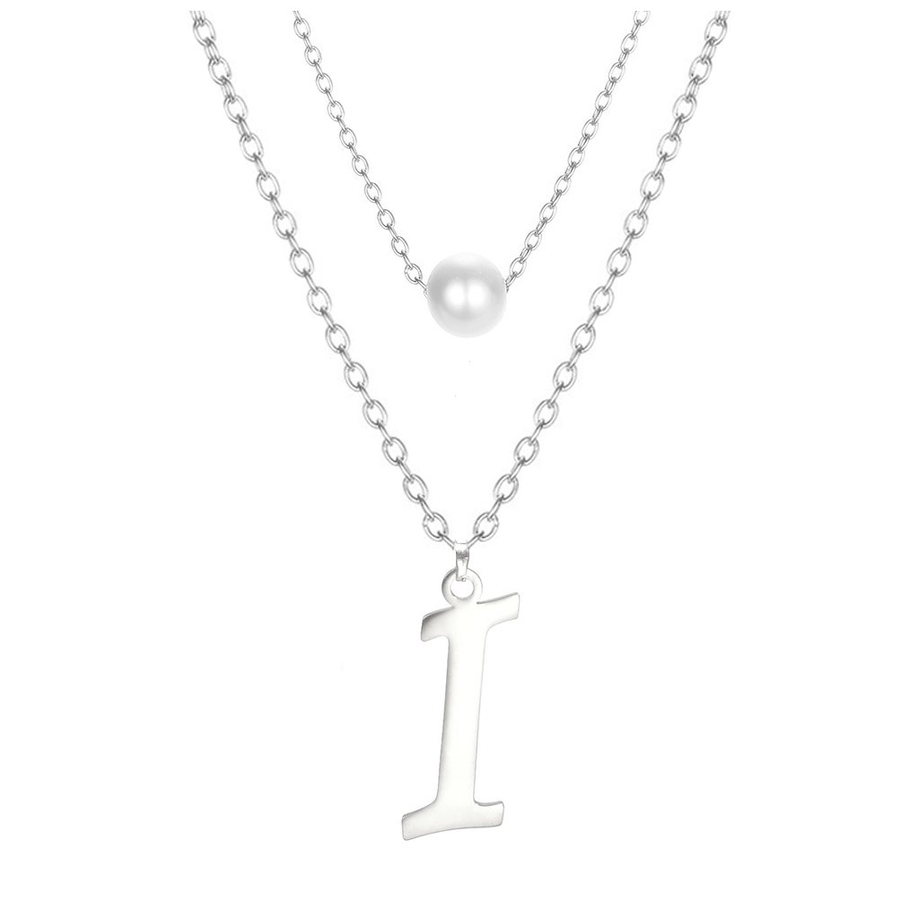 Ocelový dvojitý řetízek s přívěskem - perla a písmeno I