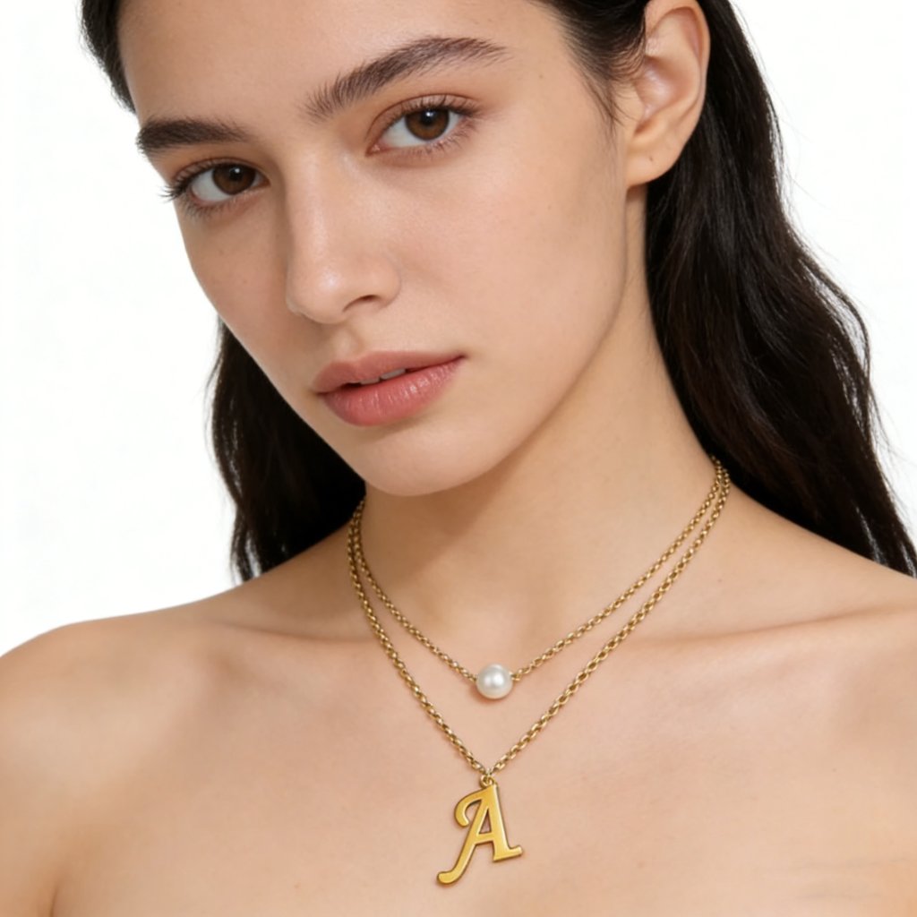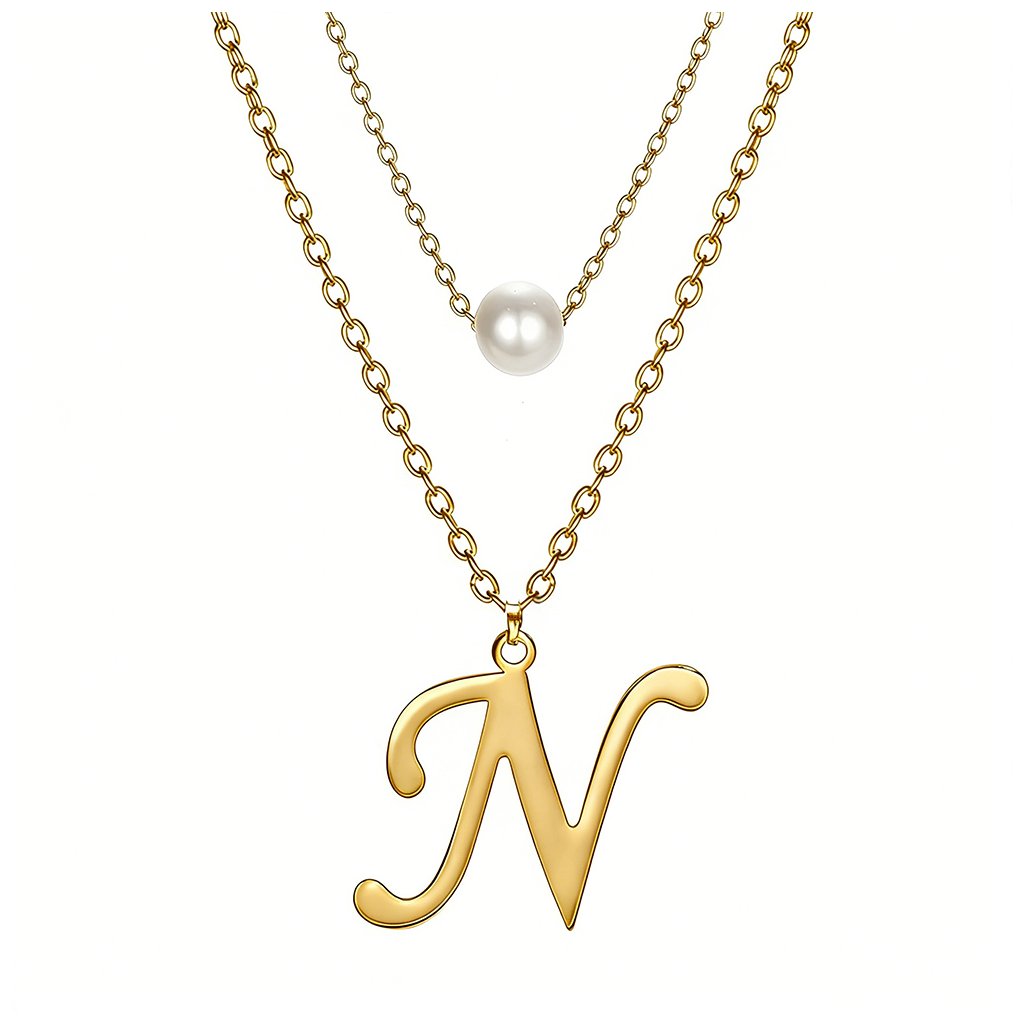 Ocelový dvojitý řetízek s přívěskem - perla a písmeno N