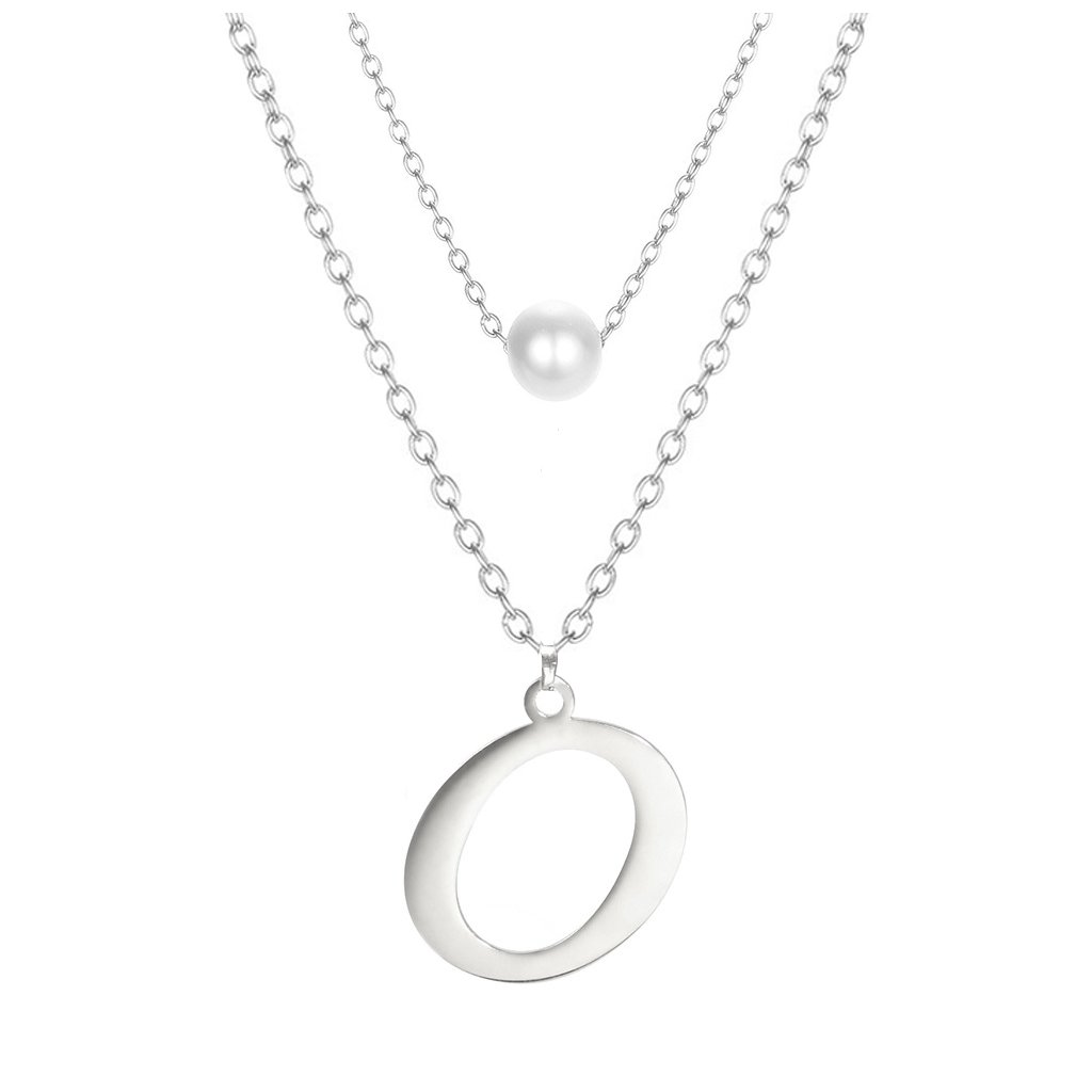Ocelový dvojitý řetízek s přívěskem - perla a písmeno O