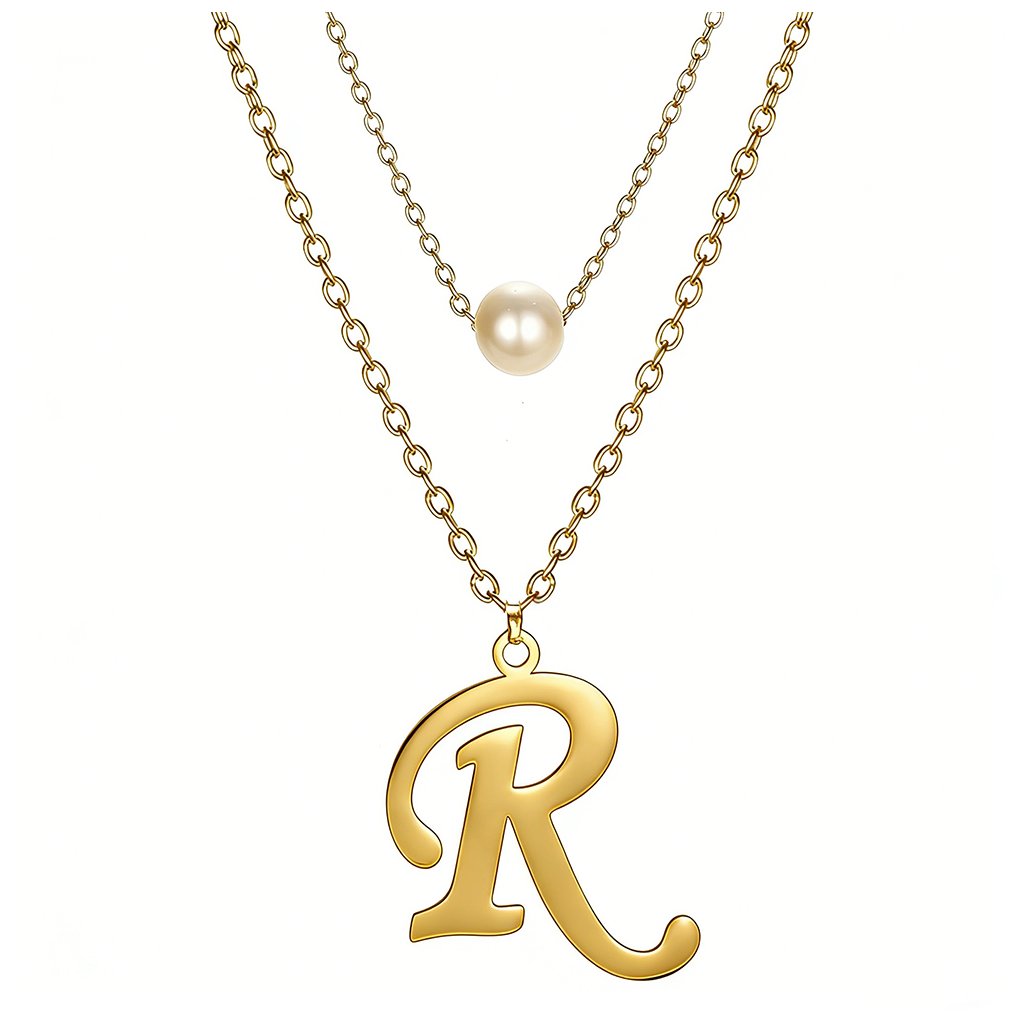 Ocelový dvojitý řetízek s přívěskem - perla a písmeno R