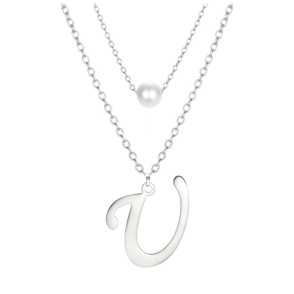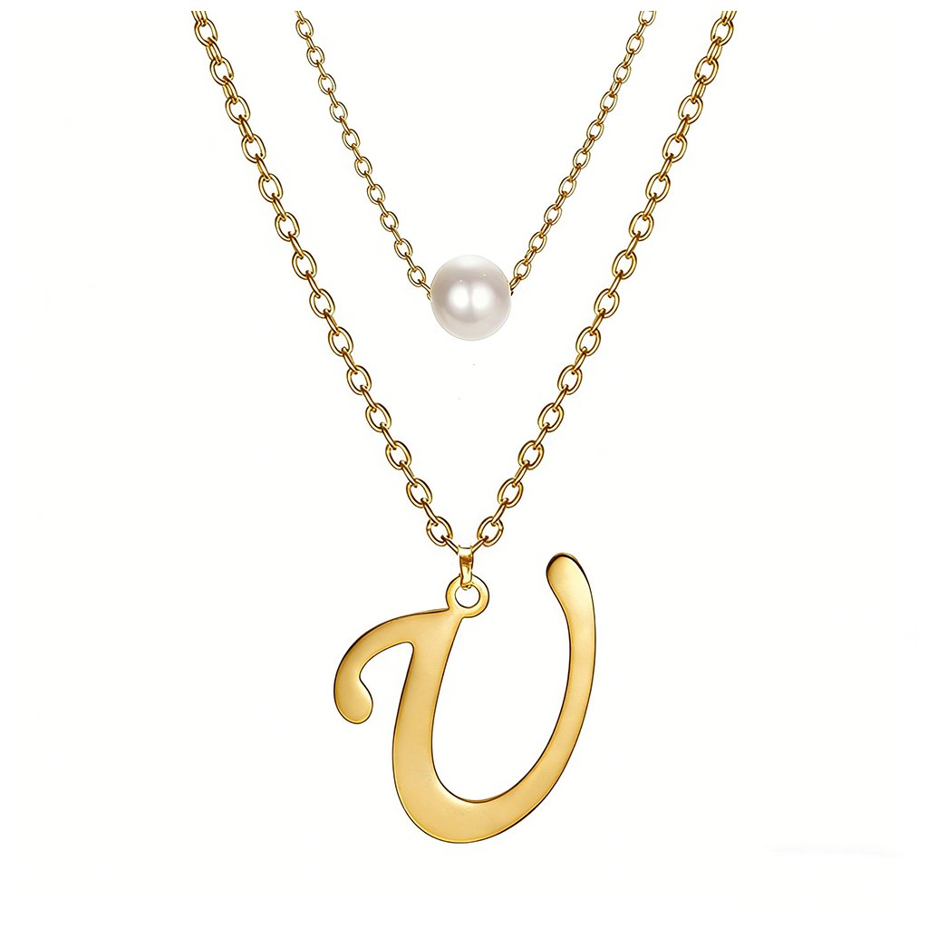 Ocelový dvojitý řetízek s přívěskem - perla a písmeno U