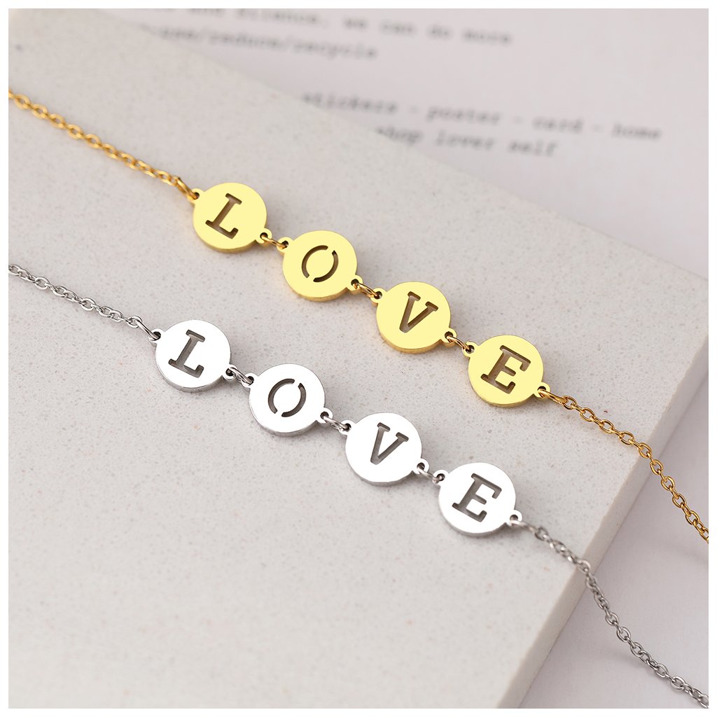 Ocelový náramek - nápis LOVE