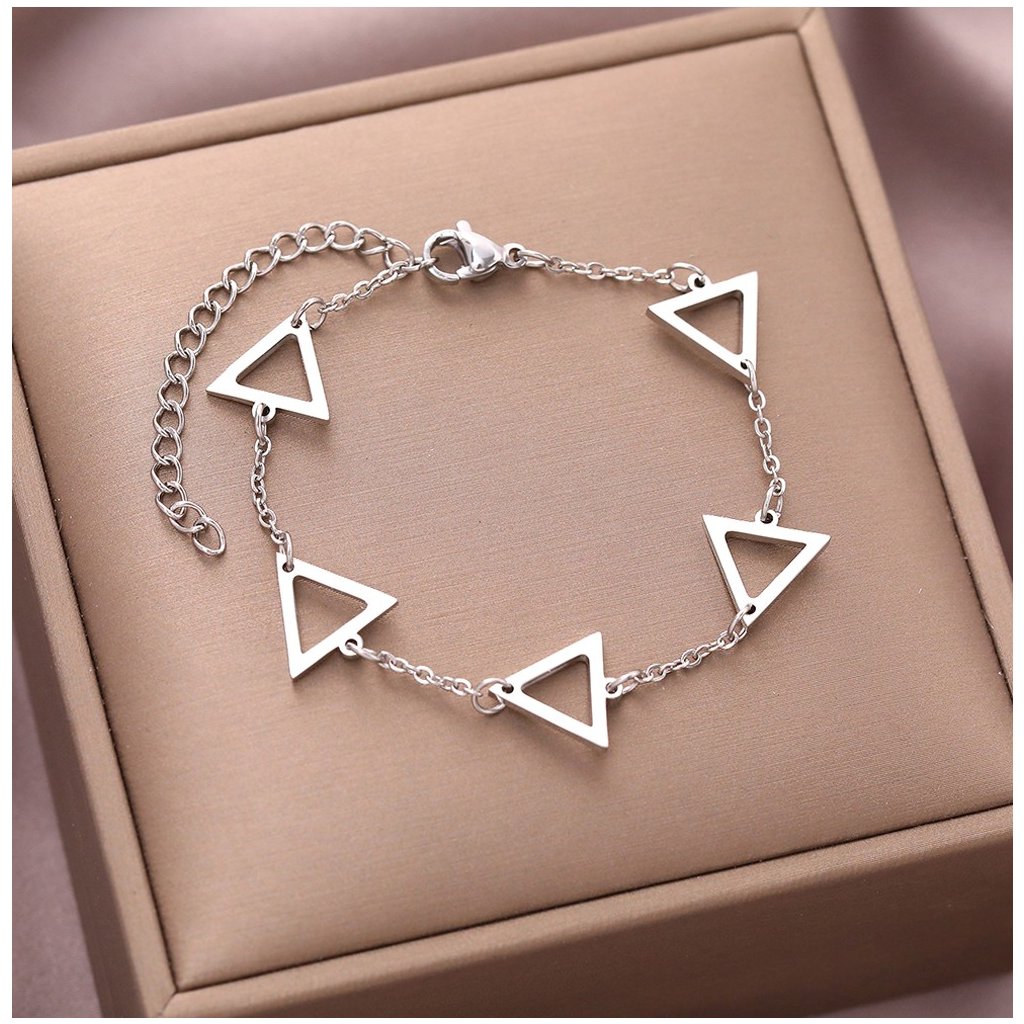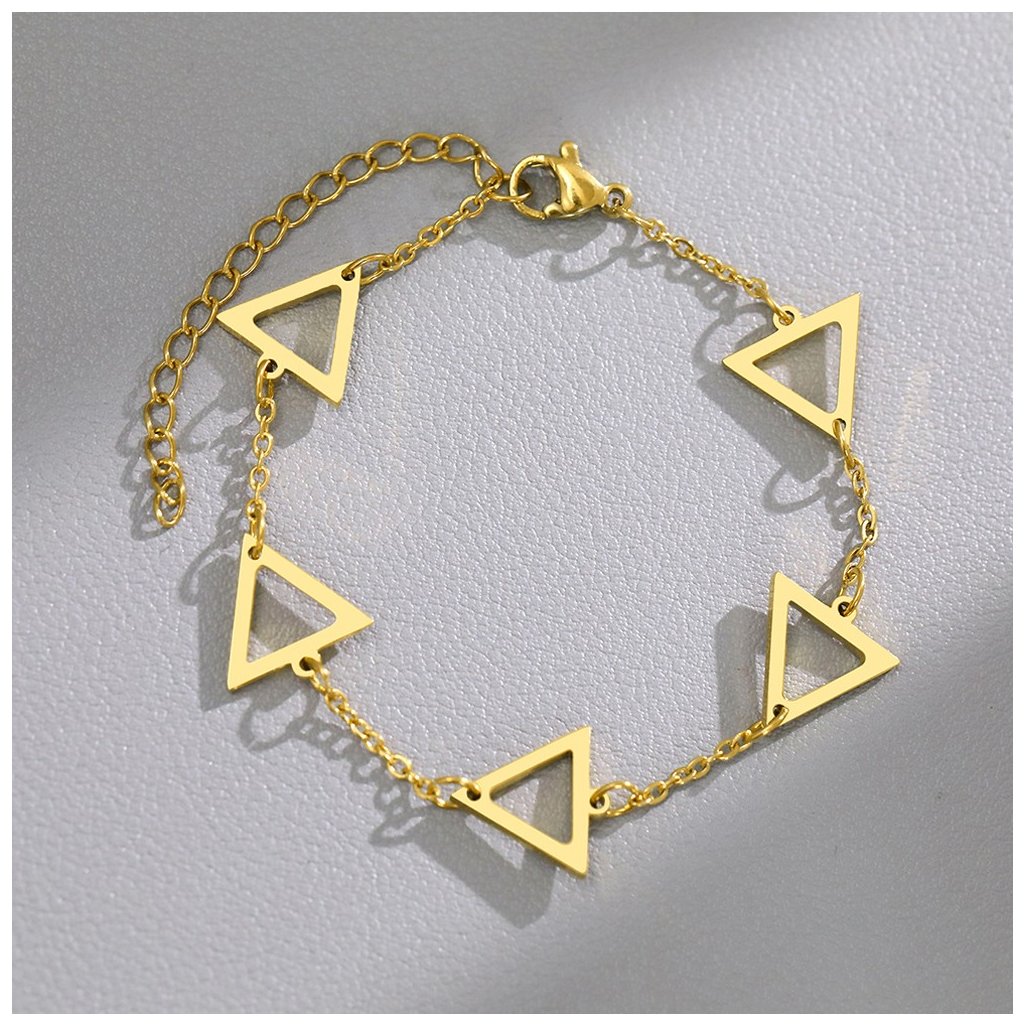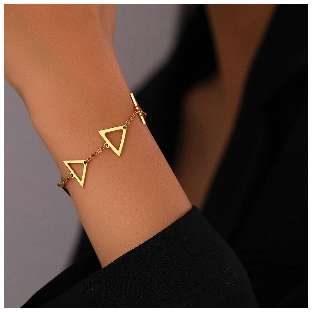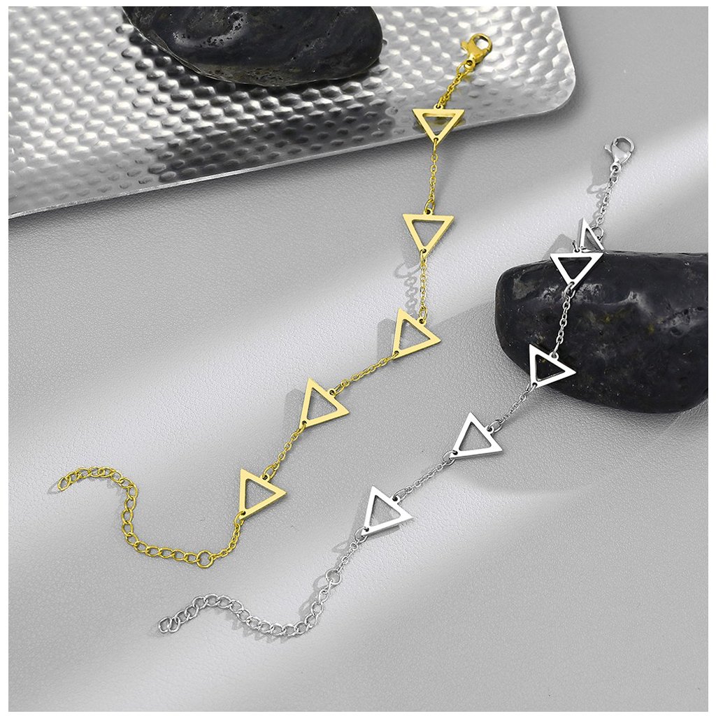 Ocelový materiál je trvanlivý a odolný, což z náramku dělá vhodný doplněk do každodenního nošení. Geometrický design trojúhelníků přidává moderní a minimalistický prvek do celkového vzhledu šperku.