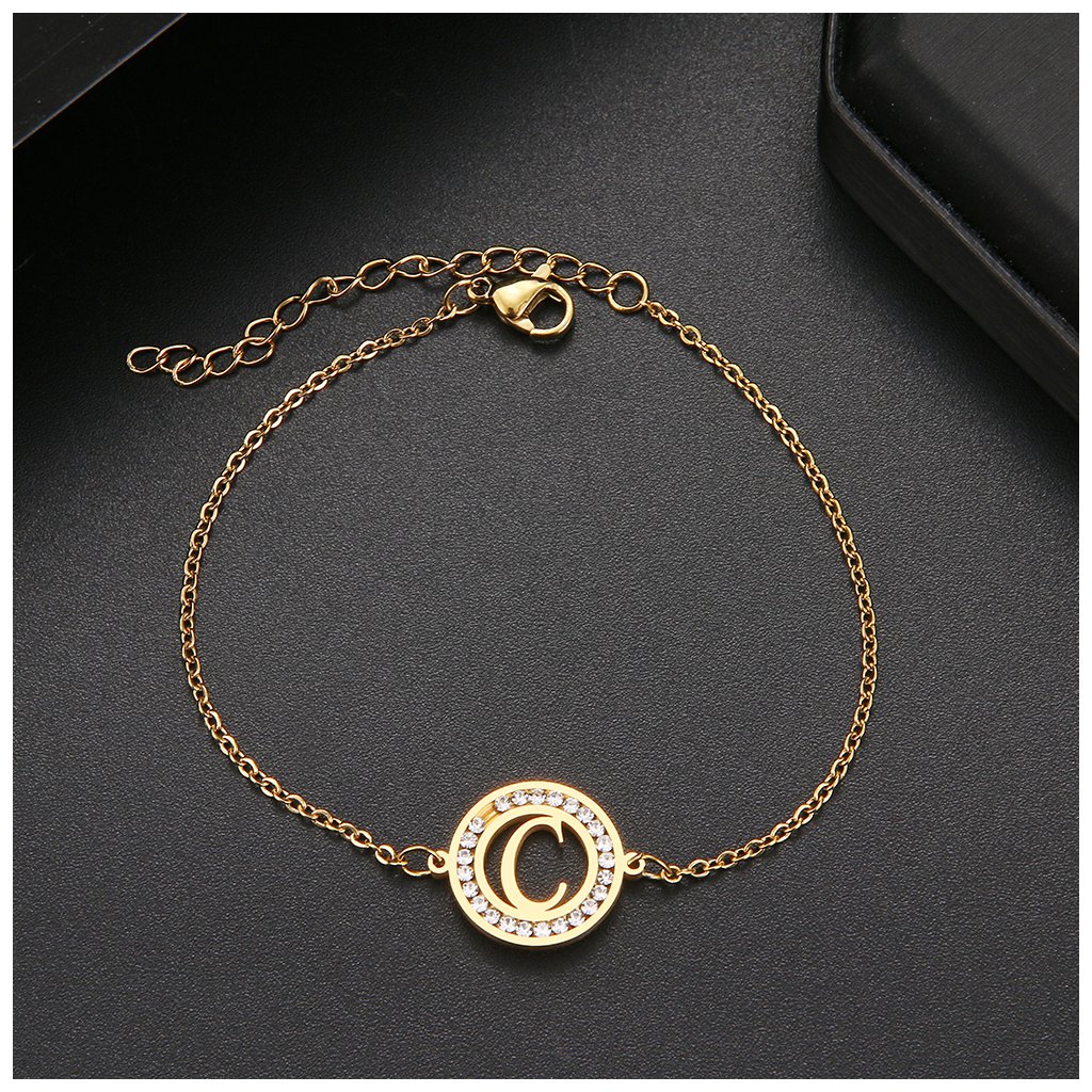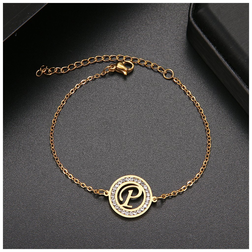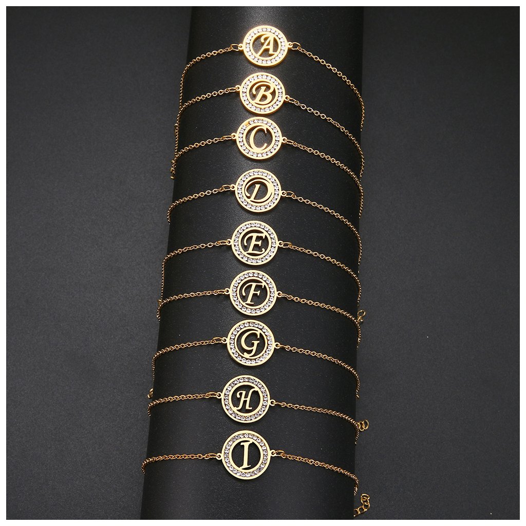 Ocelový náramek s kamínky - písmeno abecedy
