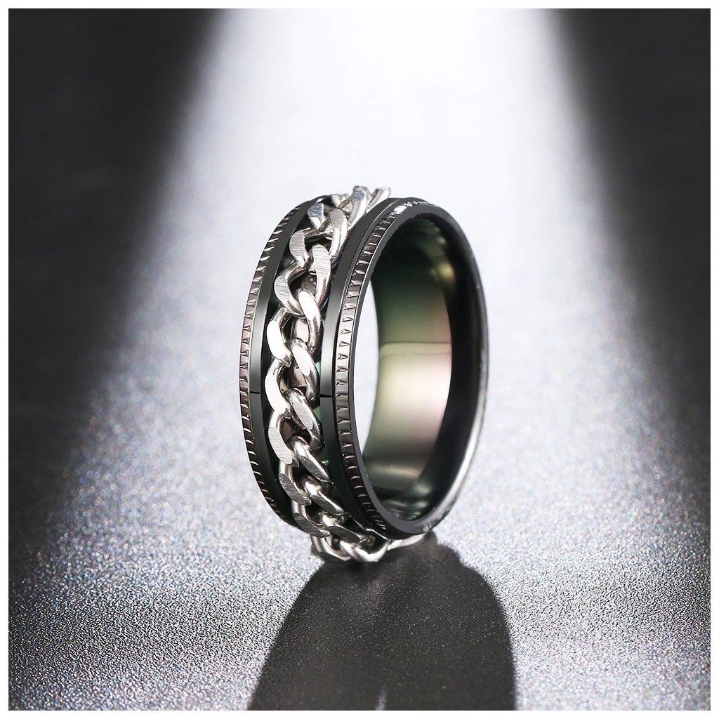 Prsten Chain se stříbrným řetízkem, černá ocel