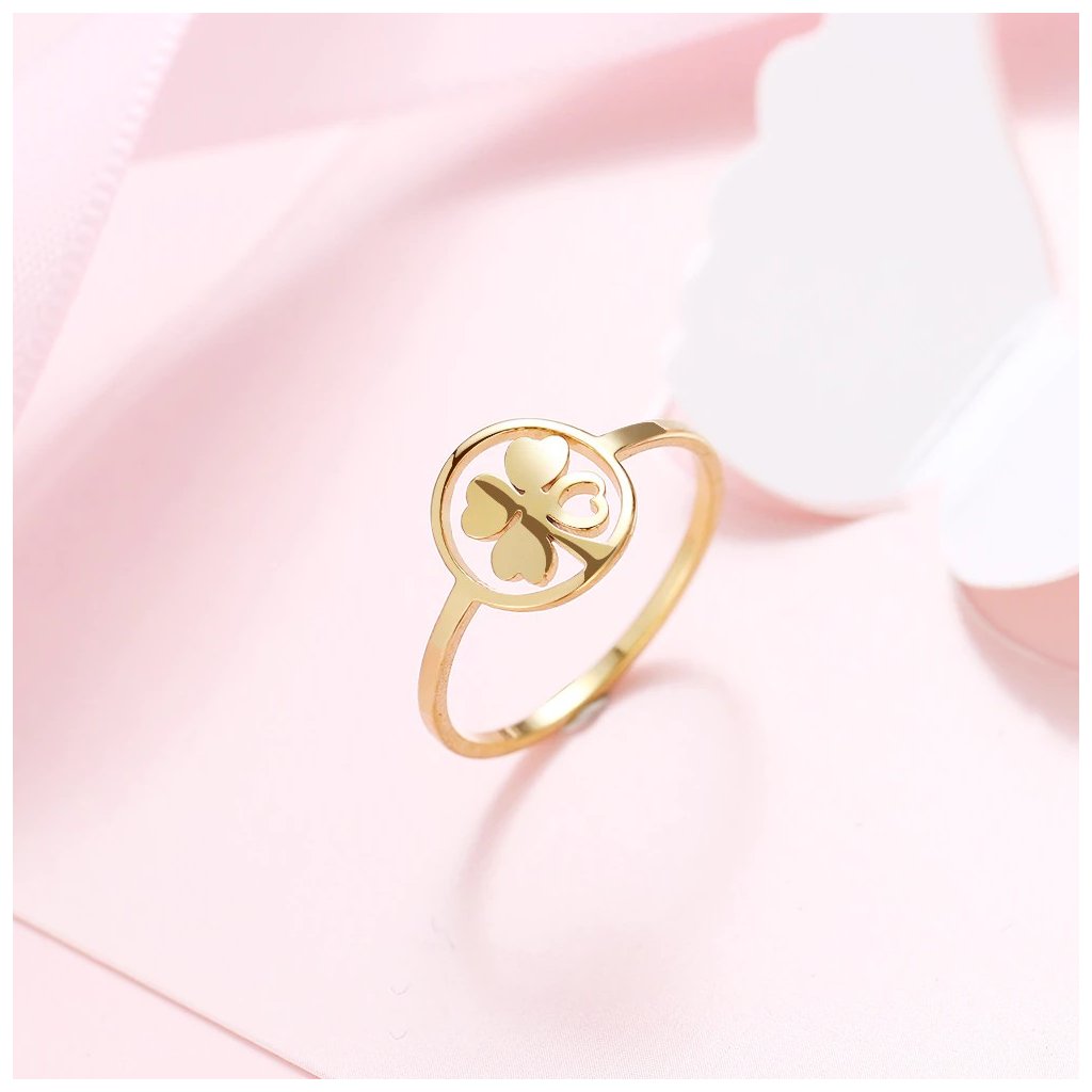 Prsten čtyřlístek se srdíčkem, zlatá ocel