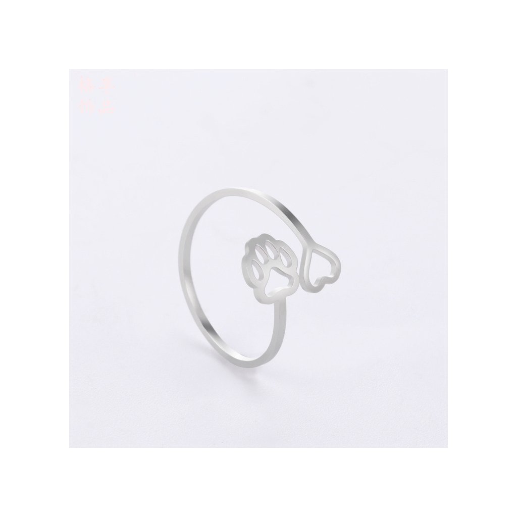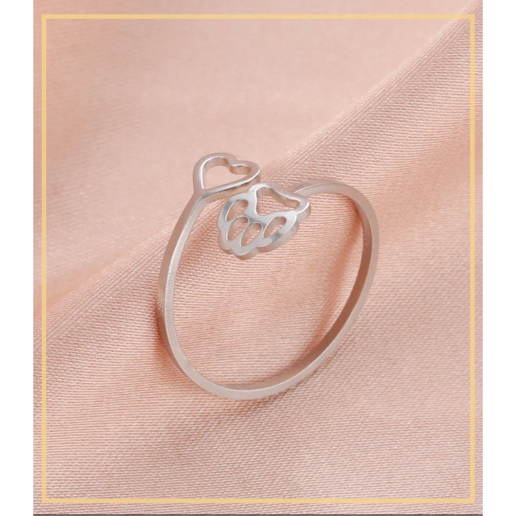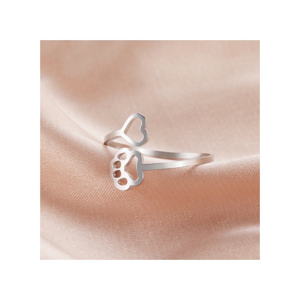 Prsten s nastavitelnou velikostí - psí tlapka a srdce, stříbrná ocel