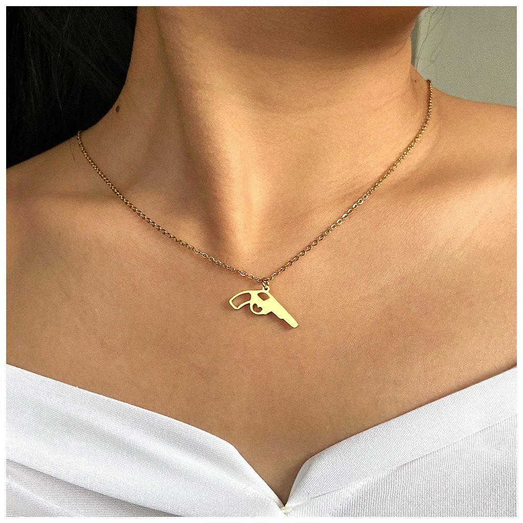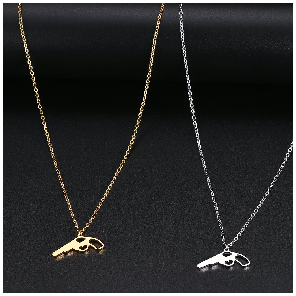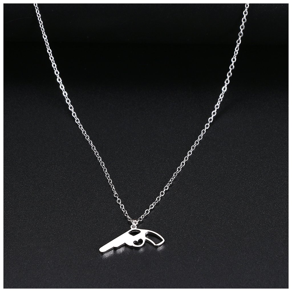 Ocelový řetízek s přívěskem - hračka zbraň se srdcem