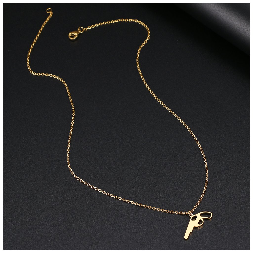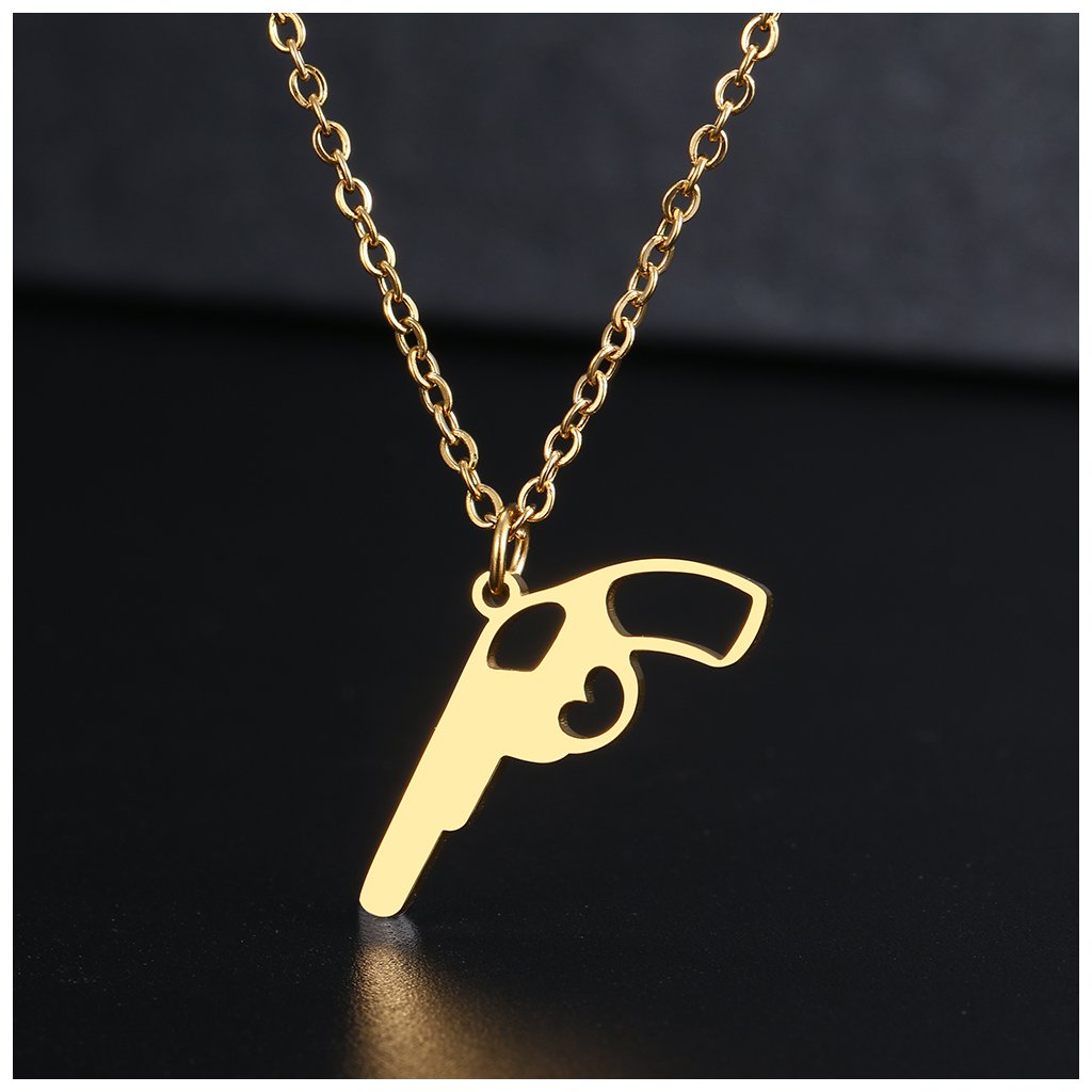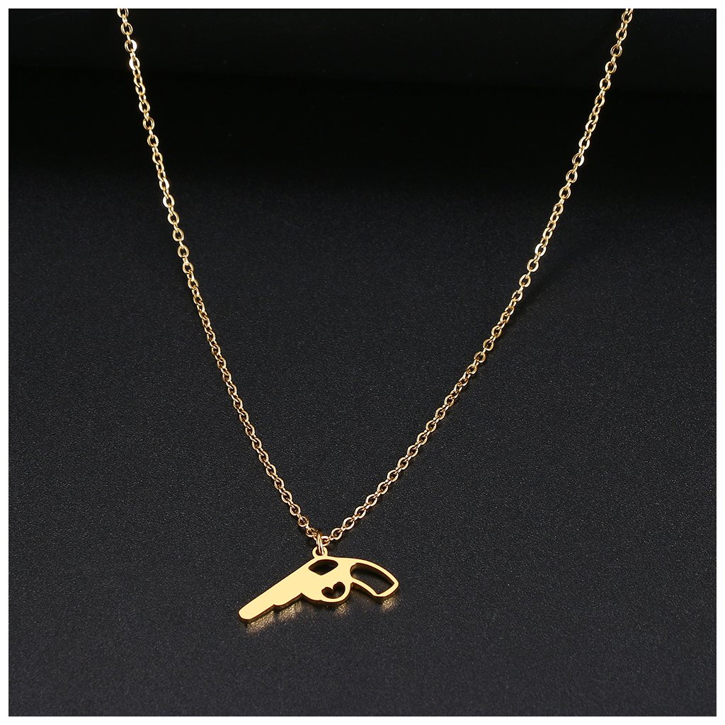 Ocelový řetízek s přívěskem - hračka zbraň se srdcem