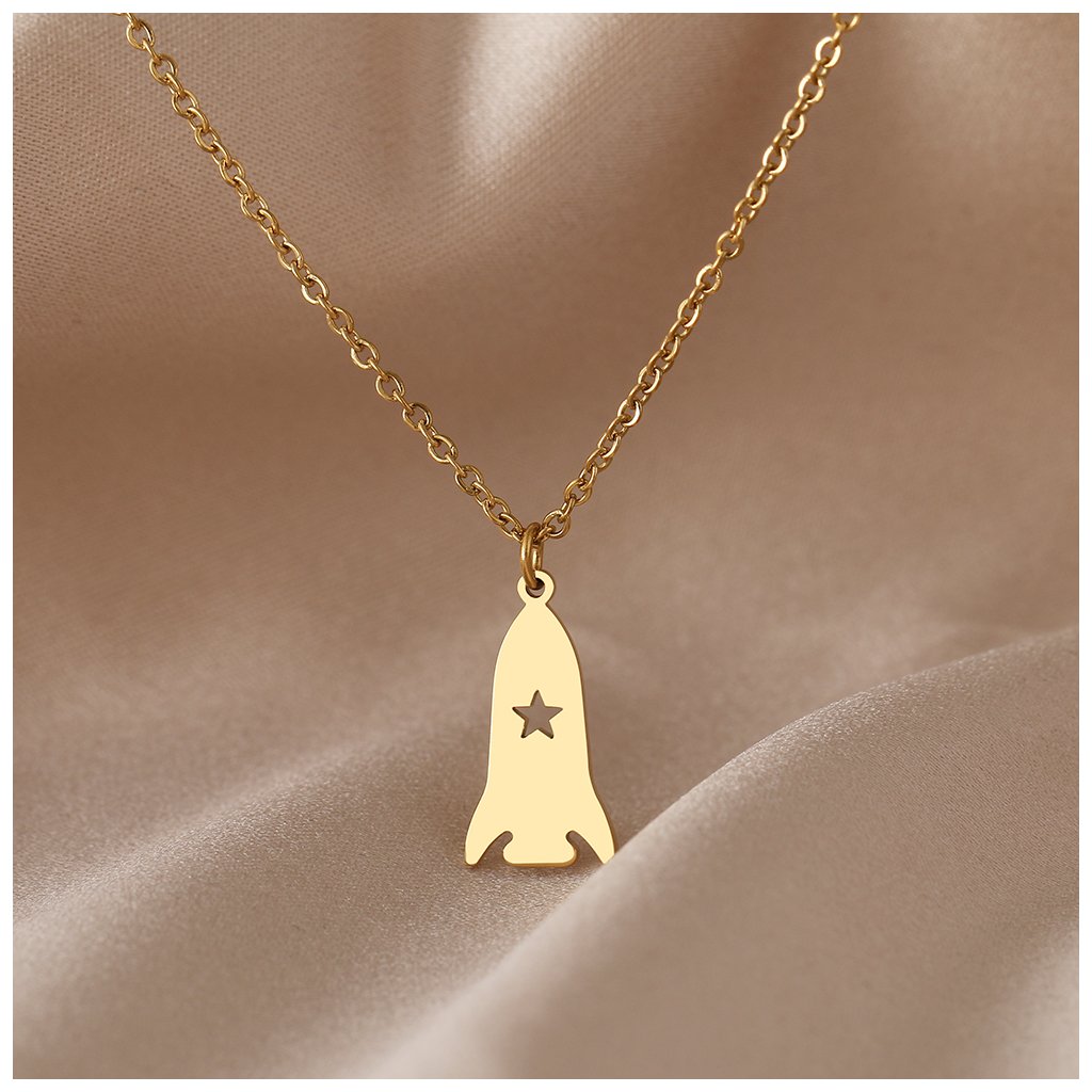 Ocelový řetízek s přívěskem kosmické rakety může mít mnoho významůí: