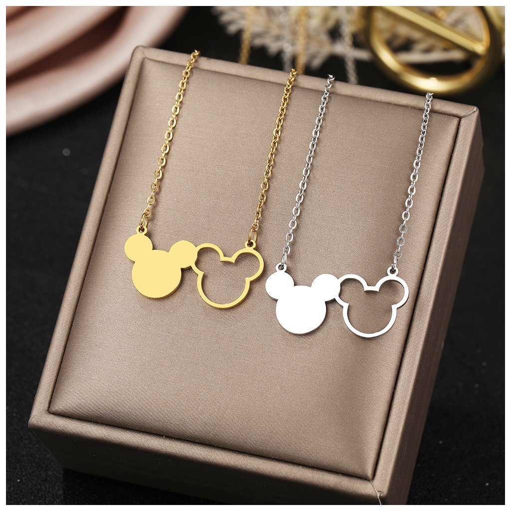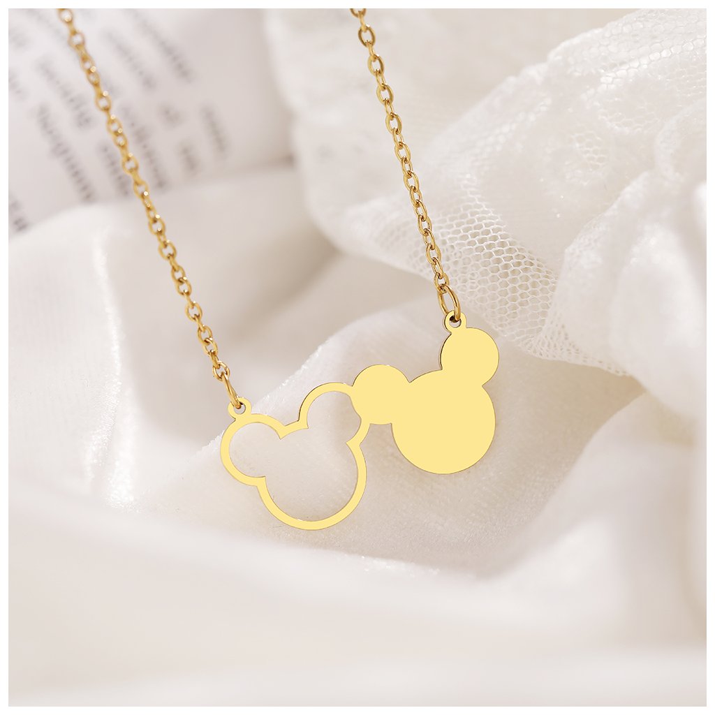 Ocelový řetízek s přívěskem Mickey Mouse dvojitý obrázek je symbolem nostalgie, radosti a štěstí. Je to krásný způsob, jak vyjádřit svou lásku k Mickey Mouseovi a k Disney kultuře.