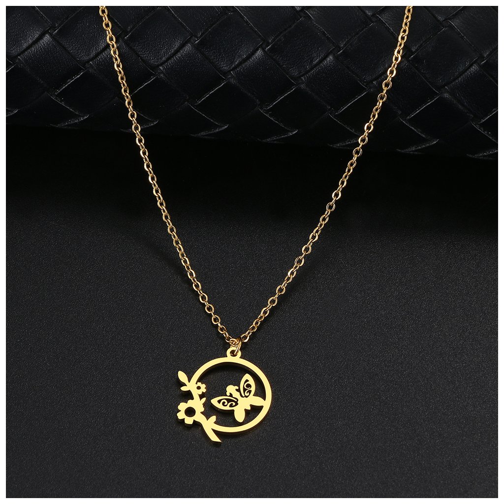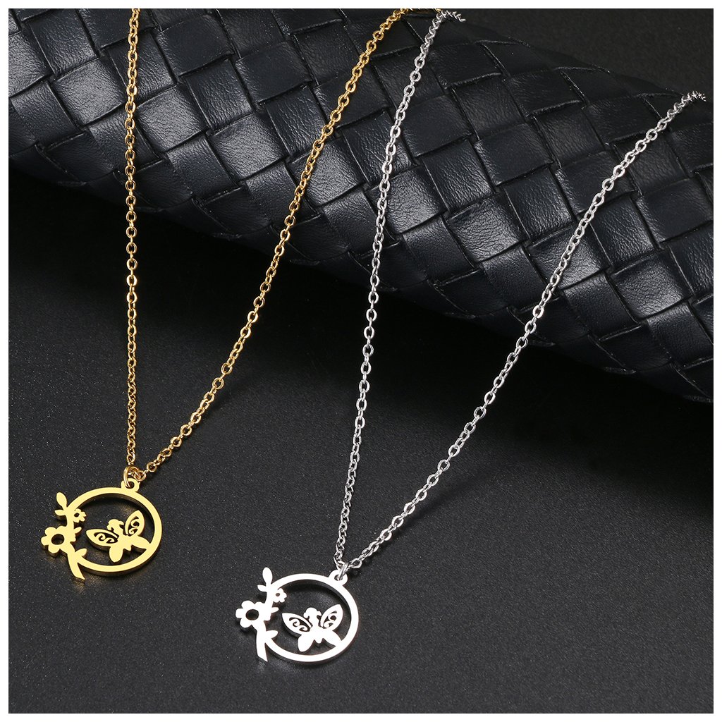 Ocelový řetízek s přívěskem - motýl s květinami v kruhu