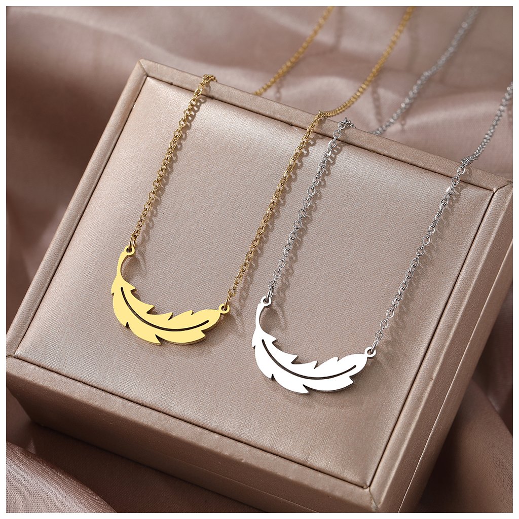 Ocelový řetízek s přívěskem - peříčko Kossa