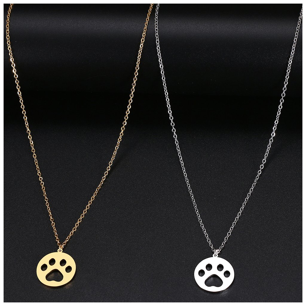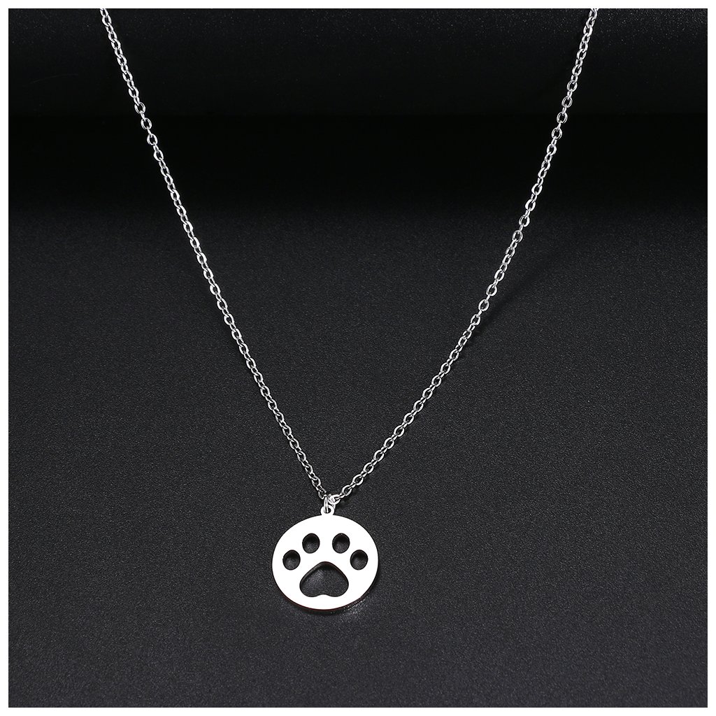 Ocelový řetízek s přívěskem - psí tlapka v kruhu