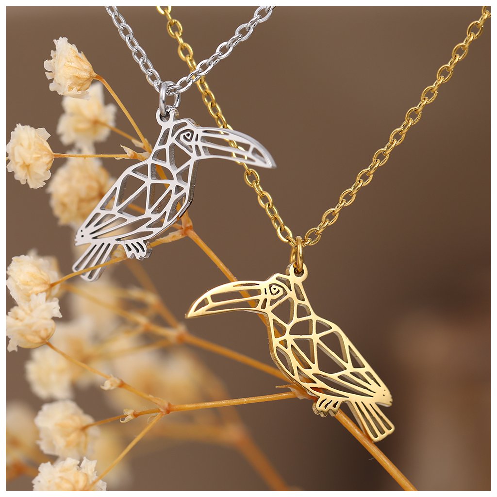 Ocelový řetízek s přívěskem - pták tukan s geometrickým vzorem