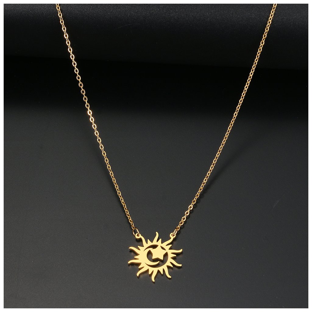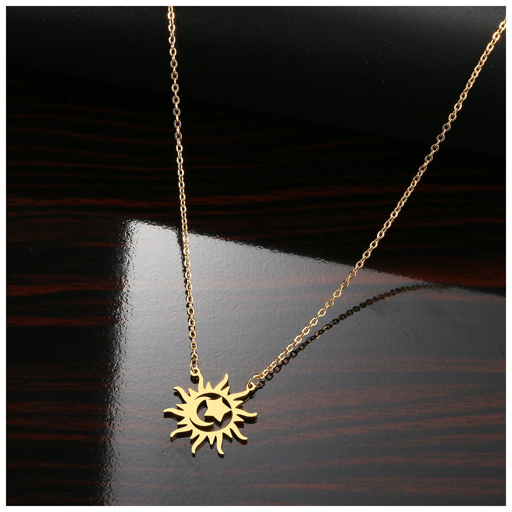 Ocelový řetízek s přívěskem slunce, měsíc a hvězda může mít mnoho významů v závislosti na interpretaci nositele a designu šperku.