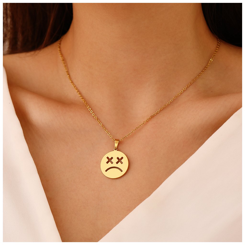 Ocelový řetízek s přívěskem - smutný emotikon Stivan