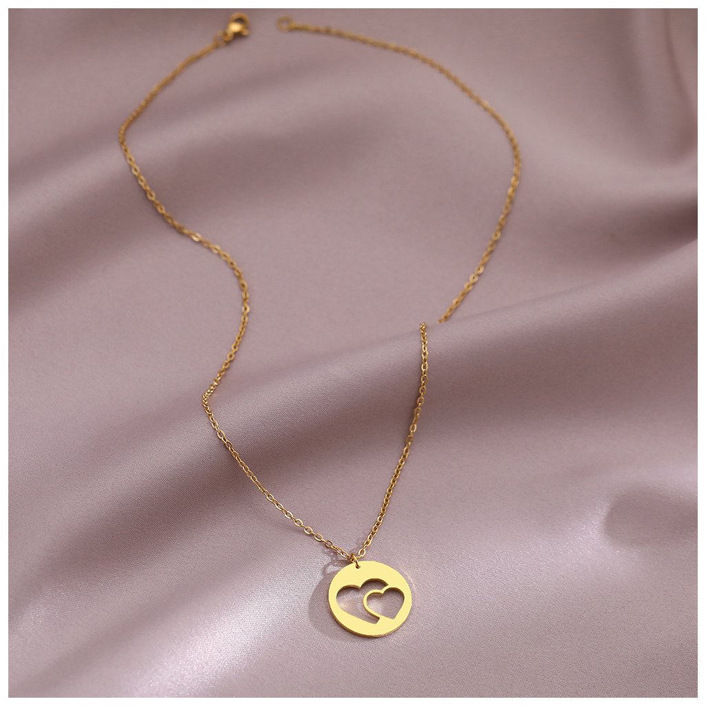 Ocelový řetízek s přívěskem - spojená srdce deux v kruhu