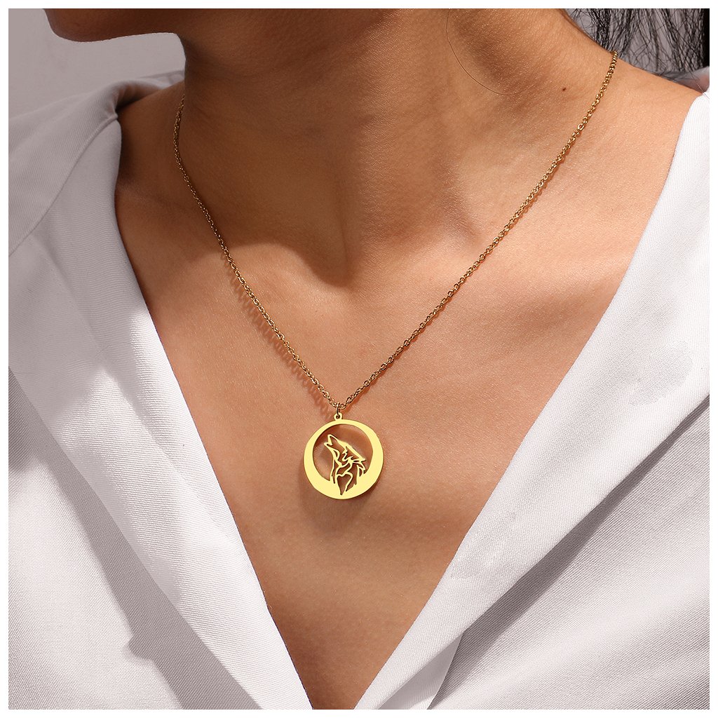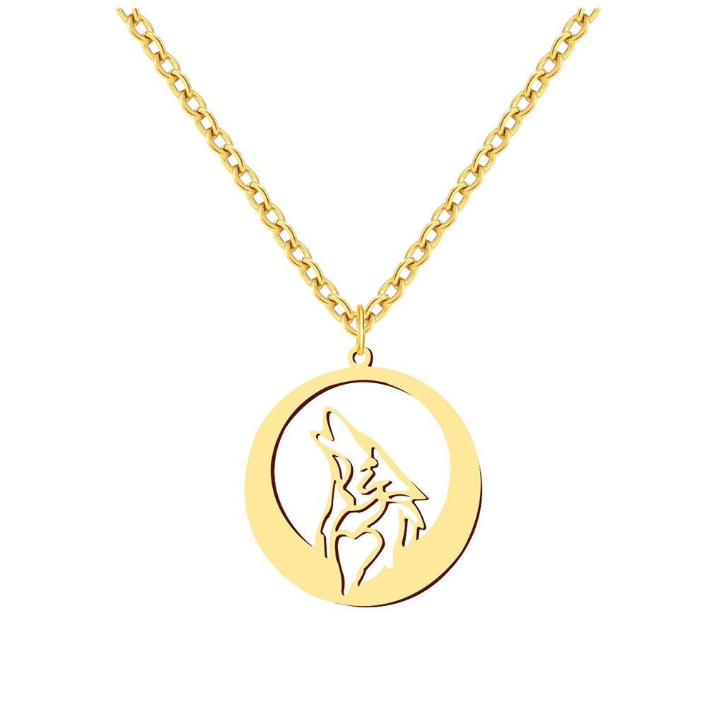 Ocelový řetízek s přívěskem - vlk a měsíc