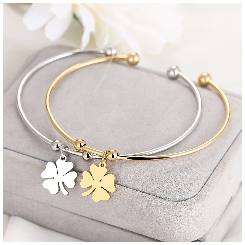 Otevřený náramek - čtyřlístek Clover, zlatá ocel